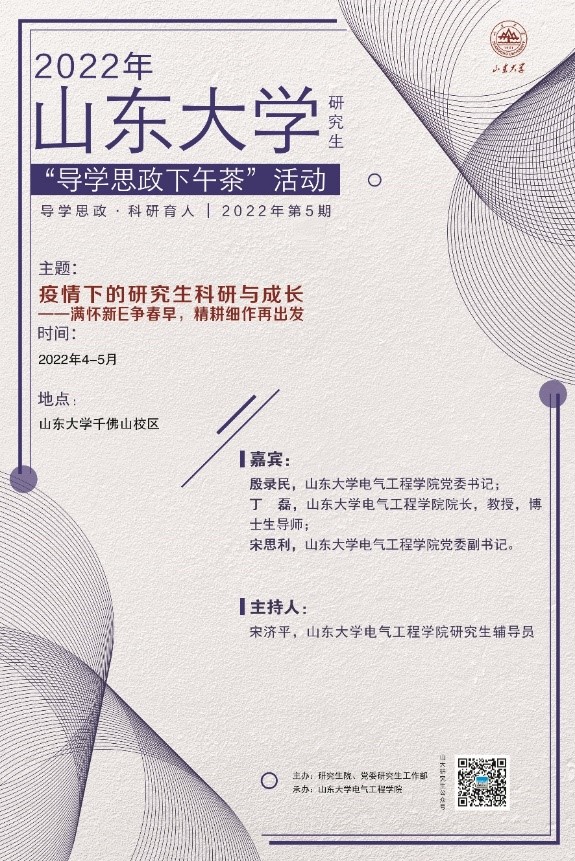 近期,国内疫情防控形势依然严峻复杂,为进一步落实疫情防控的各项要求,确保全体师生的身体健康和生命安全,山东大学暂时实行封闭式管理,为打赢疫情防控阻击战贡献山大力量。在封校期间,为了深入贯彻落实习近平总书记关于教育工作的重要论述,坚持“五育并举”教育理念,构建“三全育人”体系,学院特组织开展“导学思政下午茶”美育-体育系列活动,活动分为美育艺术节和“全民运动季”之打卡校园里的春意两个部分。系列活动开展情况回顾如下: