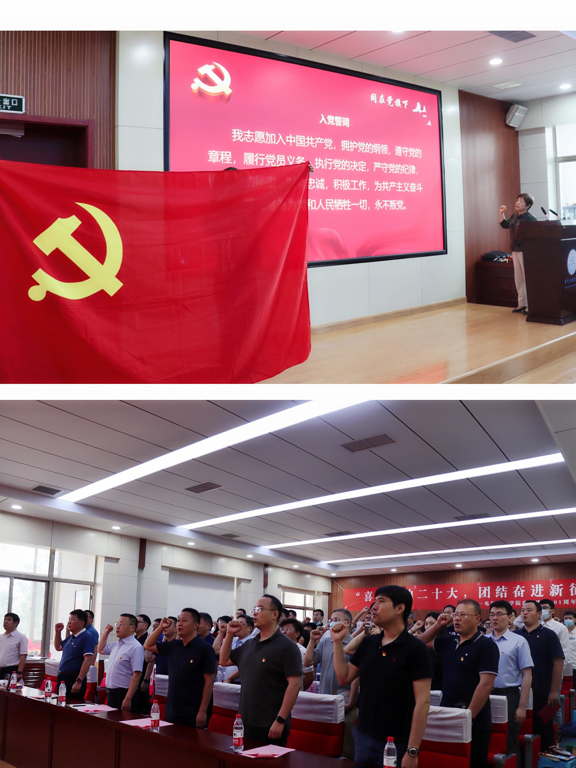 6月30日下午,yl6809永利官网党委组织开展了“喜迎党的二十大,团结奋进新征程”庆祝中国共产党成立101周年主题党日活动。用庄严的仪式感号召党员同志们不忘入党初心,肩负历史使命,积极发挥先锋模范作用。yl6809永利官网全体教工党员、部分新党员代表等共一百余人参会。党委副书记宋思利主持大会,党委书记殷录民出席大会并讲话。