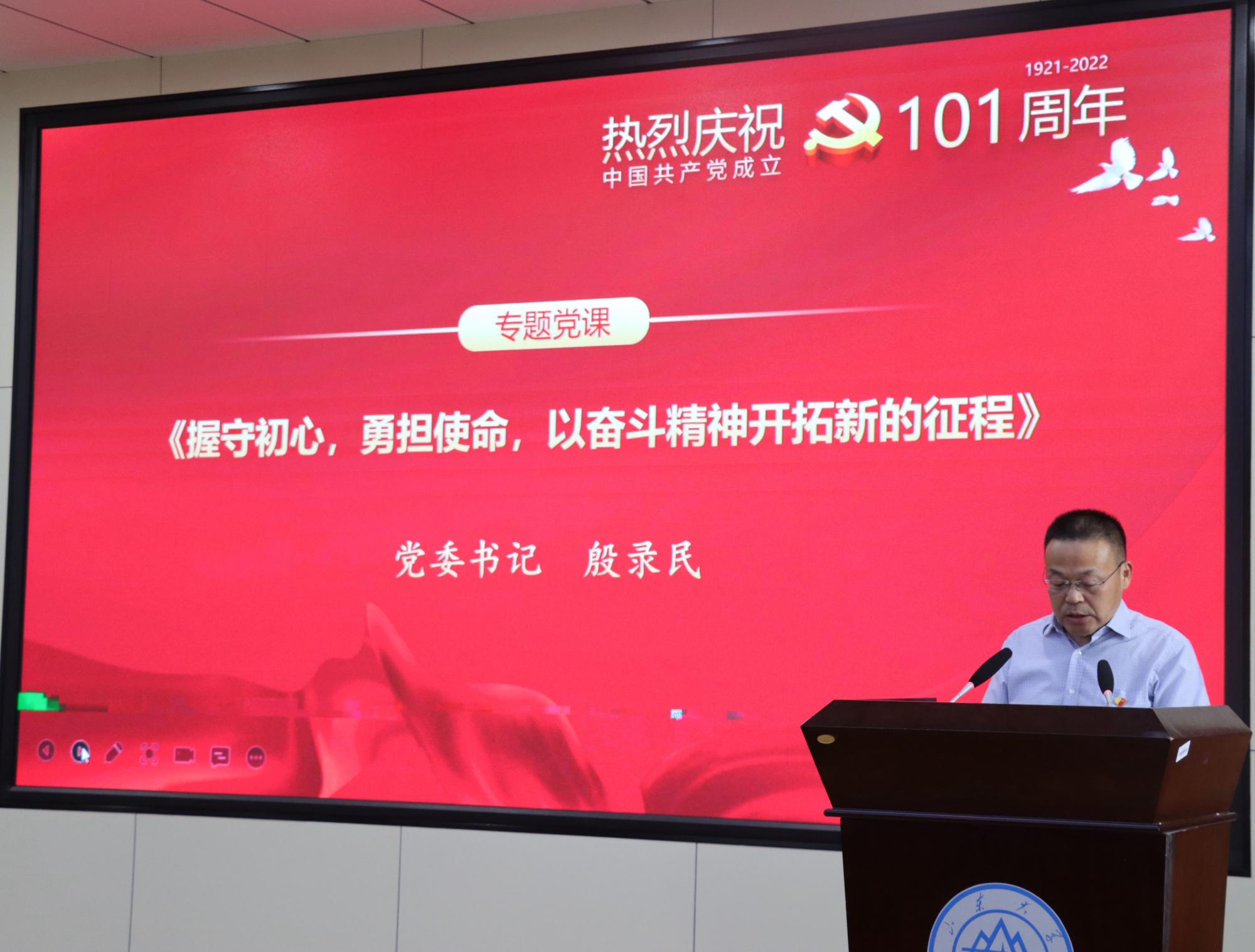 殷录民在讲话中回顾了中国共产党成立101年的光辉历程,他号召全体党员同志们要坚定崇高的理想信念,勇于承担新时代新使命,以习近平新时代中国特色社会主义思想为指引,在学院改革发展中锐意进取、争做先锋,在真抓实干中树立党员形象、实现自身价值,以自己的模范行为为党旗增光添彩,为共产主义事业奋斗终生。