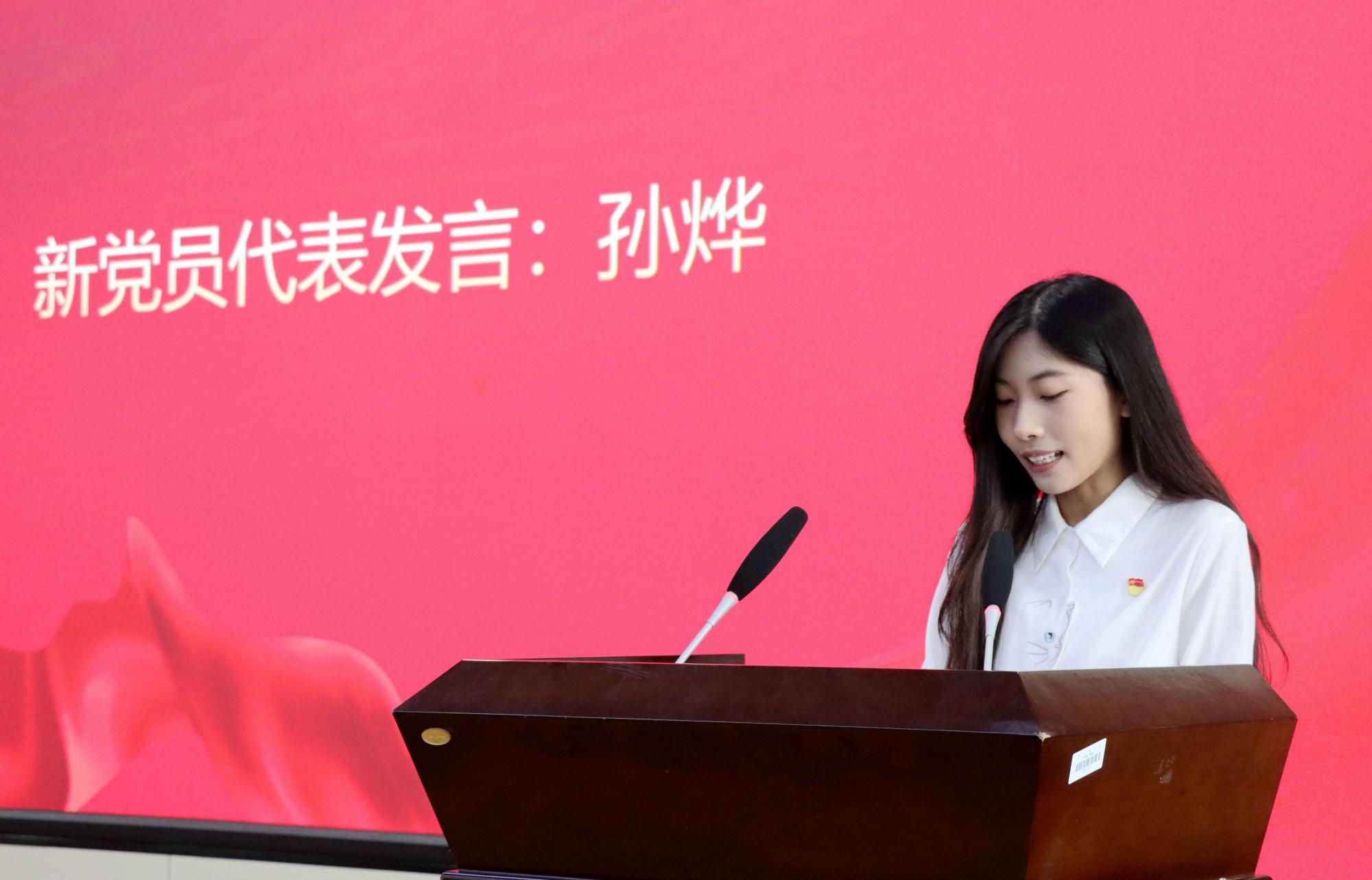 新党员孙烨同学发言,表示要努力向优秀的老党员看齐,为国家电力能源事业的发展刻苦钻研、认真工作,要为国家民族的发展作出新时代党员的积极贡献。