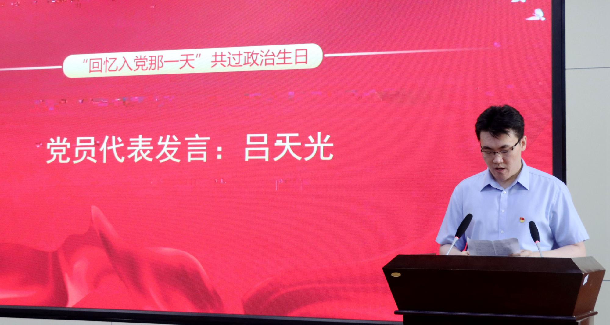 李可军教授、吕天光教授作为党员代表发言,与大家一起分享了入党那一天的激动情景及入党之后的心路历程。他们表示,要立足教师岗位,不忘入党初心和誓词,牢记教书育人、科学研究和服务社会的高校教师使命,执着坚守、踏实工作,为我院的发展尽心尽力尽责。真切的话语,朴实的情感,引起了党员同志们的强烈共鸣。