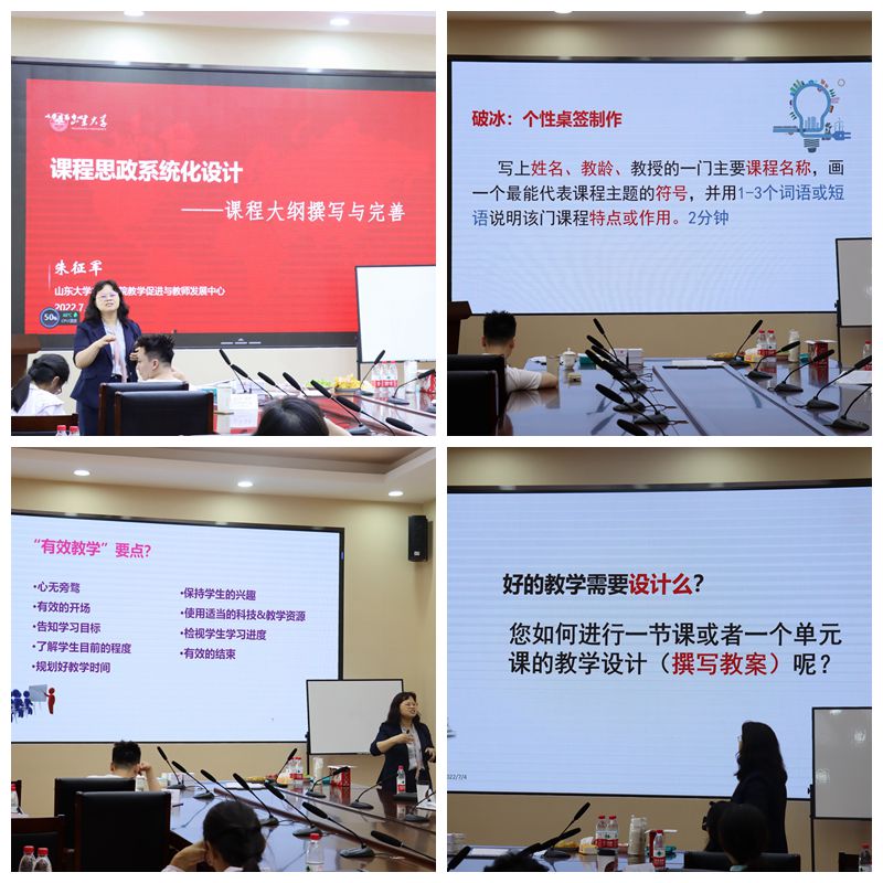 朱征军就课程思政教学设计与实施工作坊——BOPPPS教案的撰写和改进、课程思政系统化设计——课程大纲的撰写和完善向各位教师分享方法和感受,并与各位教师开展积极互动及讨论。