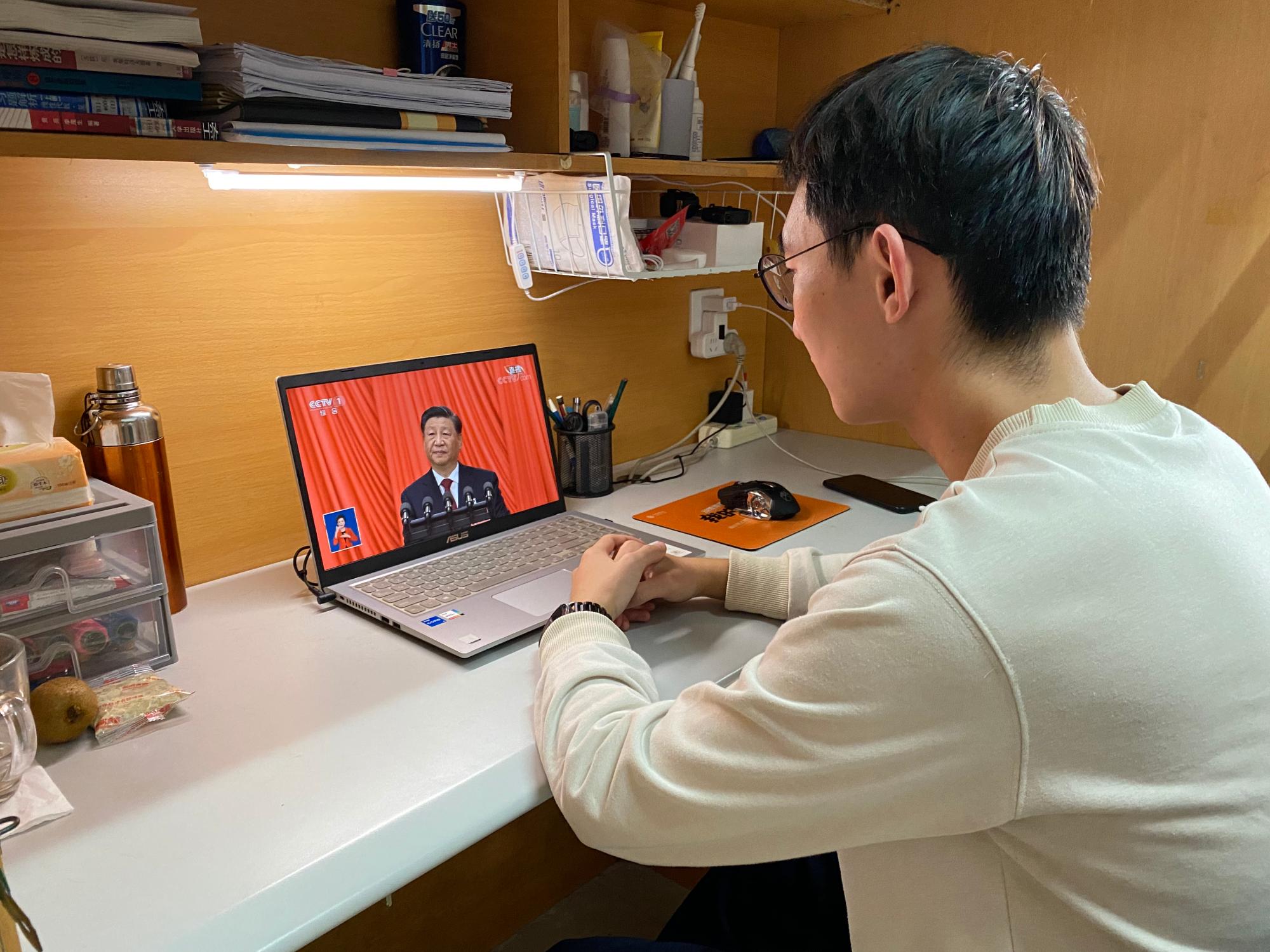 2019级本科生李晓林说:“作为一名生在红旗下、长在红旗下的山大学子,作为一名青年党员,观看完党的二十大开幕式后,我更加坚定了自己不忘初心,艰苦奋斗的信心。”