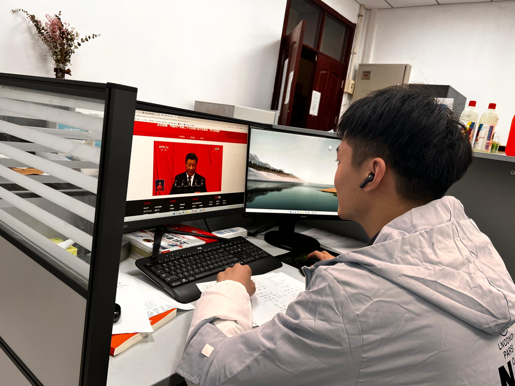 2020级学硕党支部董玉展说:“作为一名党员学生干部,我与党同频共振、同向同行,深刻感受到了党凝心聚力引领中国、圆梦中华的强大力量,我将自信自强、守正创新,为全面建设社会主义现代化国家、全面推进中华民族伟大复兴贡献一己之力。”