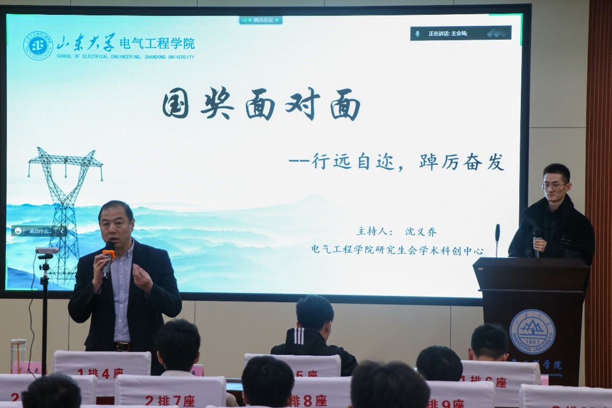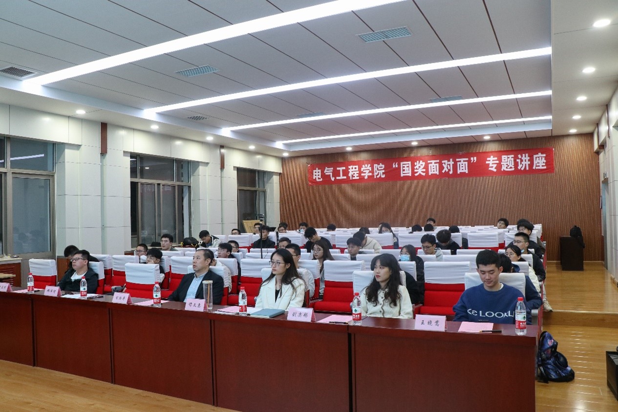 11月14日晚7点,yl6809永利官网“国奖面对面”专题讲座科研分享会在电力楼四楼报告厅成功举办。本次分享会邀请的主讲人为2020级硕士研究生王晓嵩、刘奕彤以及2019级博士研究生邢泽智、李亚辉。学院研究生办公室主任宋济平和研究生辅导员谭文惠出席本次活动。分享会采用线上线下结合的方式举办,由研究生会学术科创中心干事沈义乔主持。