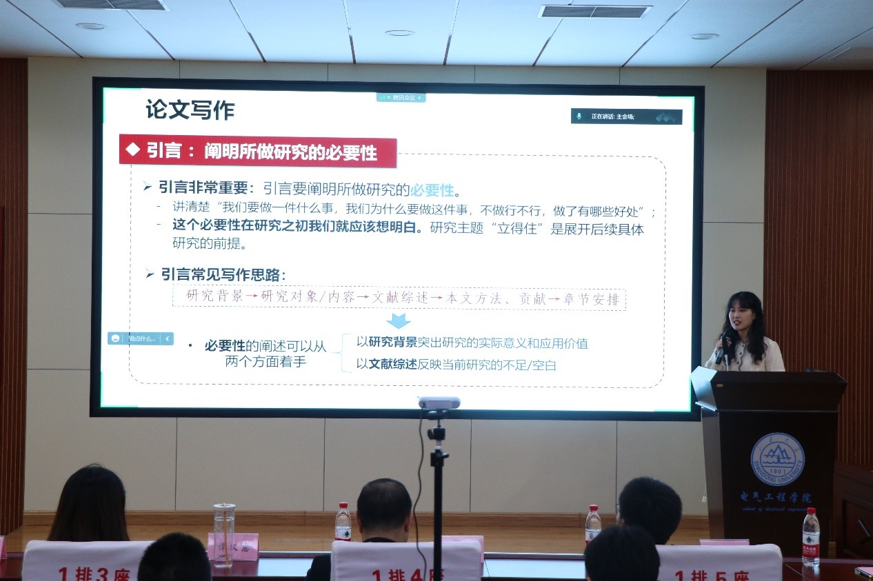 刘奕彤分享了自己的论文撰写及投稿经验,并向同学们介绍了电气方面常见的期刊,以及期刊投稿的难易程度和周期。