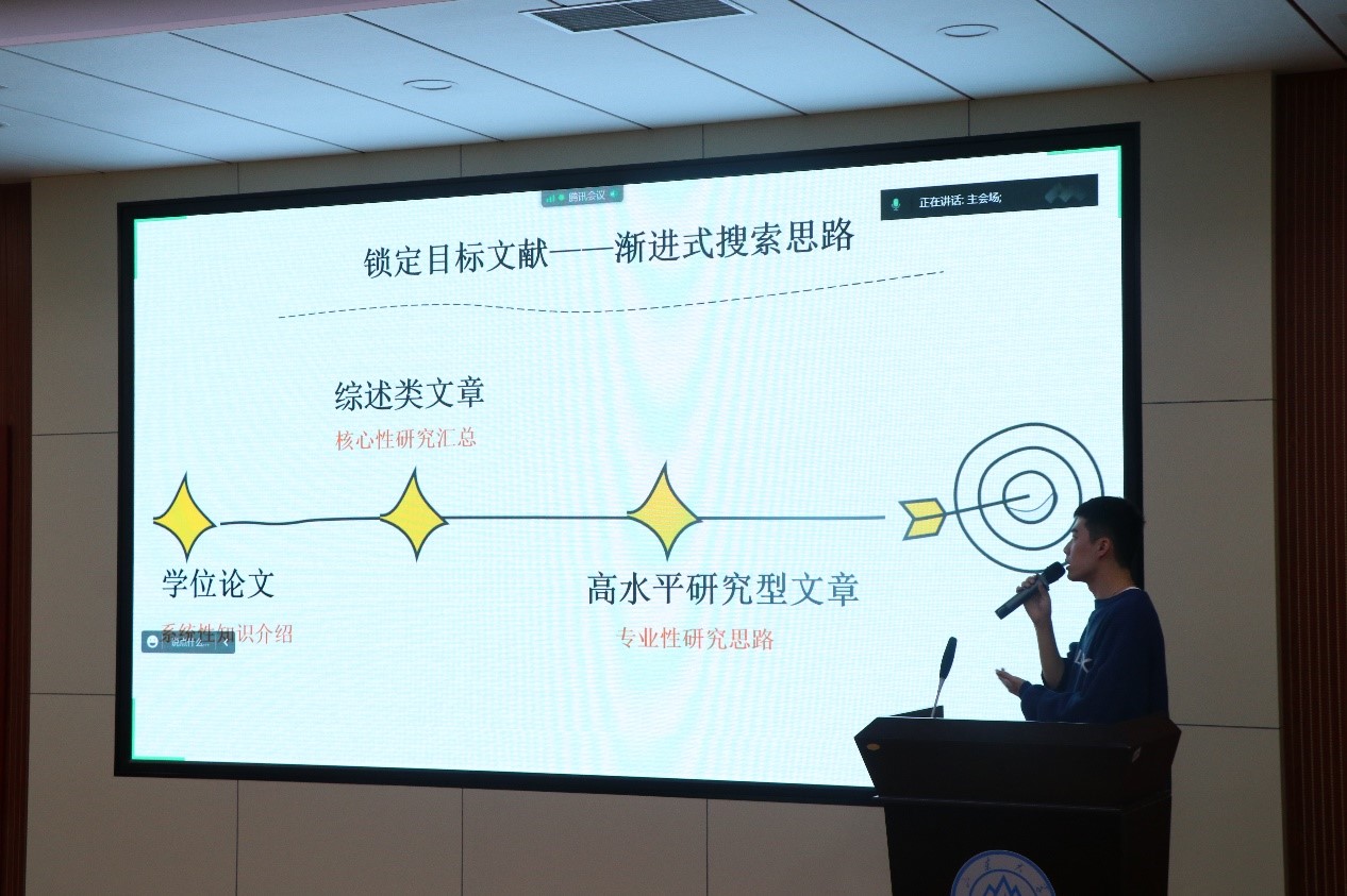 邢泽智向同学们分享了自己常用的几款文献管理软件,传授了自己如何培养科研能力的经验,并建议同学们要对自己的研究生阶段进行科学规划。针对是否读博这一问题,他分享了自己理解的读博的得与失供同学们参考。