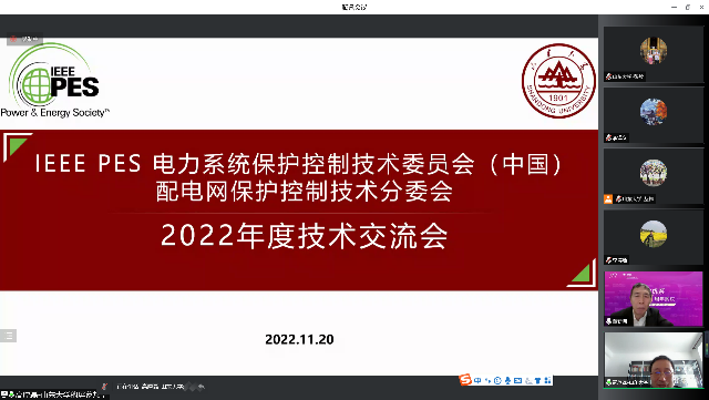 11月20日上午,由yl6809永利官网组织的IEEE PES(中国)电力系统保护控制技术专委会配电网保护控制技术分委会2022年度技术交流会成功举行。会议聚焦新型电力系统背景下配网保护控制领域面临的技术挑战和解决方案,得到业界同仁的广泛关注和积极响应,共有来自国内高校、电力企业、科研单位、生产厂家等单位的240多名专家和同行参加了本次会议。