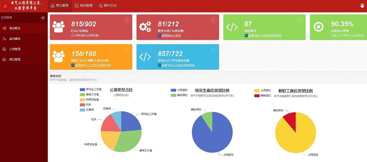 学院资源使用效率不断提高。智慧会议室管理系统上线近一年以来,已申请使用预约服务4000余次,会议室使用效率大幅提升;课题组例会、项目研讨、合作洽谈、政治学习、学生答辩,会议室已成为每位师生随约随用的学习交流场地,信息化服务获得感得到极大满足。通过公房工位管理系统,对212间办公用房、732个研究生工位、4000余平米实验室进行统一调配,实现了空间资源的合理分配、高效利用与安全管理。实验室管理系统通过设备预约共享、设备分时使用,大幅提升了实验资源利用率,为高水平教学科研提供有力支撑。