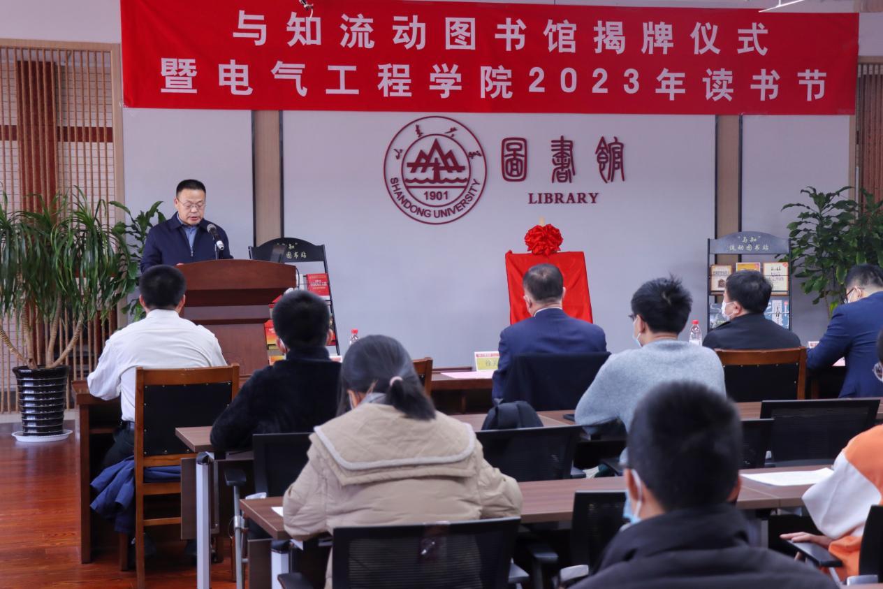 学院党委书记殷录民在致辞中说,在今年全国教育工作会议上,怀进鹏部长强调“要把开展读书活动作为一件大事来抓,引导学生爱读书、读好书、善读书”。学院读书节以学生发展为中心,依托“与知”流动图书馆与远山谈读书分享会活动,让图书在同学之间、宿舍之间、年级之间、学院之间、校区之间流动起来,让知识在你我他中传递,一同营造“结伴读书、共同成长”的氛围,打造书香校园。这是落实教育部七项重点任务的重要举措,也是落实怀进鹏部长到山大调研指导时提出两个表率的具体行动。