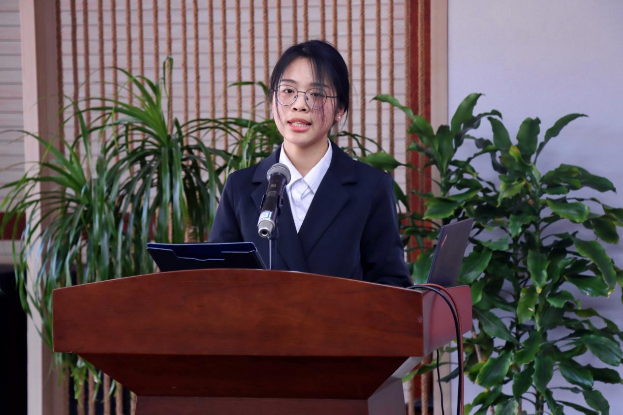 随后,“远山谈”第一期读书分享活动开讲。yl6809永利官网2019级本科生蔺笑扬以“金石姓氏录——中华汉姓断代统计及其考辨”为主题进行分享,以逐步认识玺印简帛的经历为线索,细致地分享了学习探索的感悟,引起了大家探索中华传统文化的共鸣。