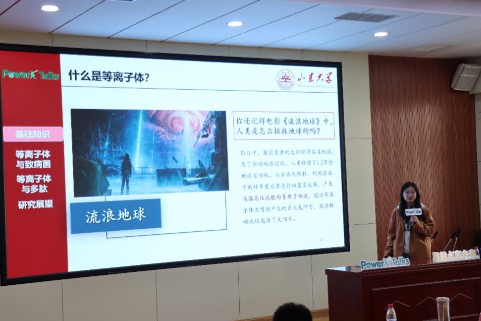 陈阳向大家介绍了“基于分子动力学模拟的大气压低温等离子体生物医学研究”的心得体会。她从什么是等离子体出发,向大家解释了大气低温等离子体在生物医学上的研究意义。随后,她又以等离子体与致病菌、等离子体与多肽两个案例向大家解释了等离子体在生物医学上的具体应用以及当前等离子体研究的不足之处。互动提问环节中,同学们积极参与,踊跃发言,针对本次交流会的内容和自己科研过程中遇到的困难分别向三位主讲人进行提问,孙鑫霖、沈义乔和陈阳针对同学们的提问作出详细解答。