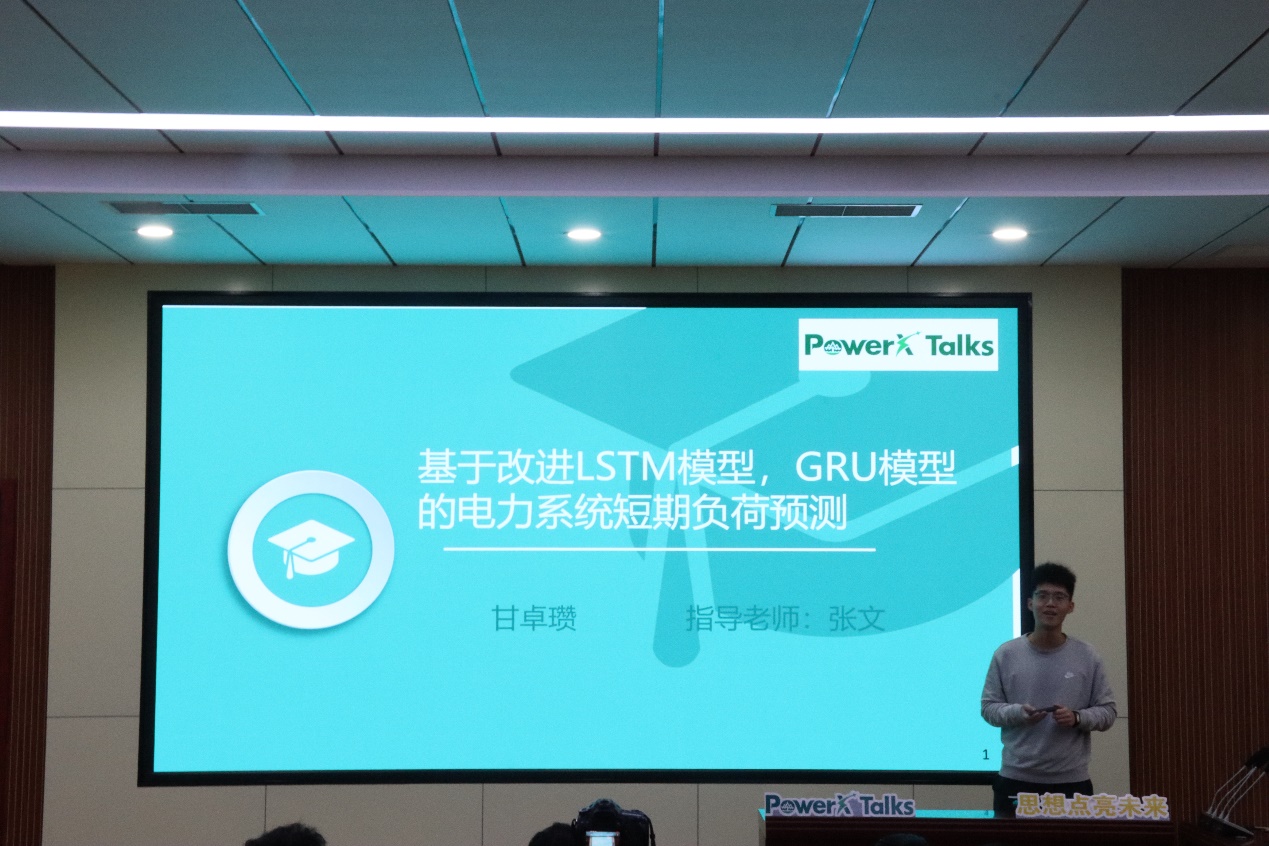接着,甘卓瓒为大家介绍了自己在深度学习与电力系统结合方面的心得体会。他从深度学习领域的基本知识出发,介绍了模型构建与训练策略、误差评价指标和实验结果分析的方法,利用改进的GRU模型和改进LSTM模型,对实际系统短期负荷情况进行了预测。他着重介绍了时间卷积网络,以机组组合问题为例,介绍了一种将深度学习与电力系统相结合的优化方法。互动提问环节中,同学们积极参与,踊跃发言,针对本次交流会的内容和自己科研过程中遇到的困难分别向两位主讲人进行提问,范学美和甘卓瓒针对同学们的提问一一作出详细解答。