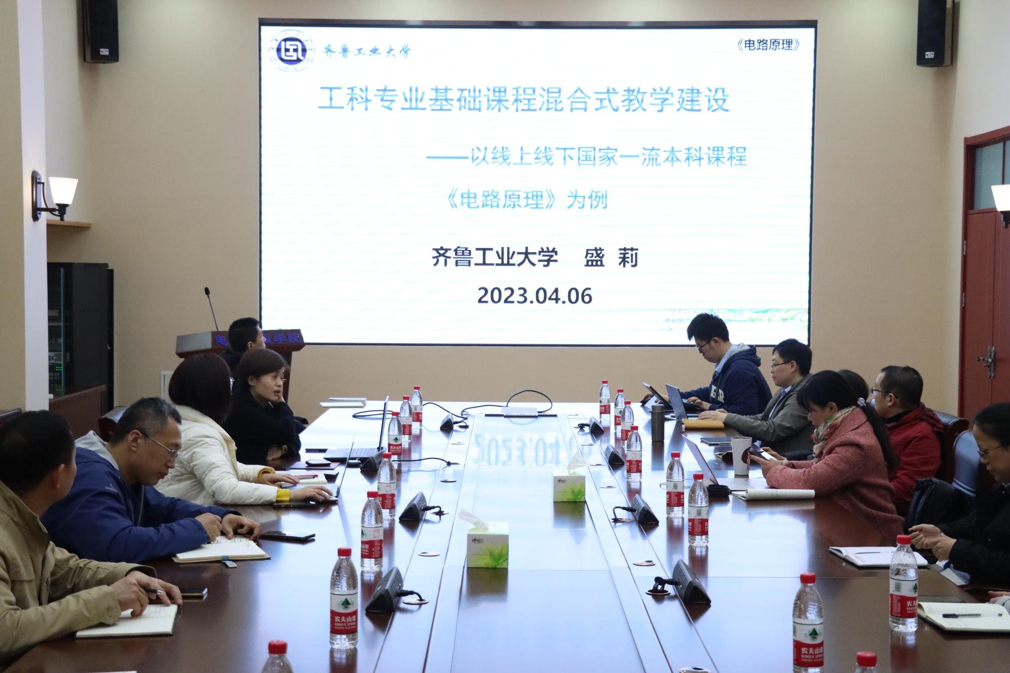 为有序推进国家一流课程建设及下一批次申报工作,促进各课程团队全面把握一流课程建设评审指标及申报材料,yl6809永利官网于2023年4月6日邀请齐鲁工业大学国家一流课程《电路原理》负责人盛莉教授来我院作报告。院长助理孙媛媛、教学中心部分成员、各课程负责人及相关教师参加会议。孙媛媛主持会议。