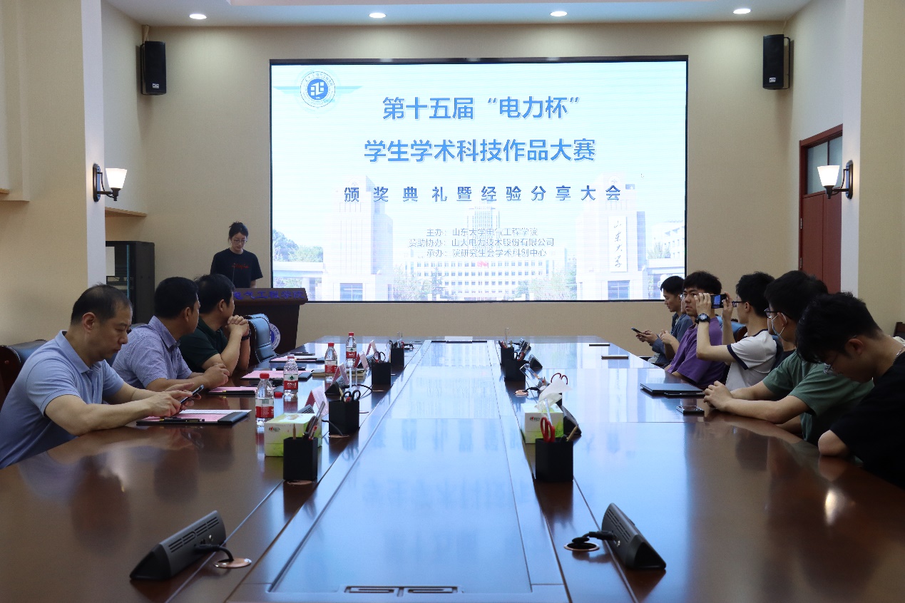 5月26日,由山东山大电力技术股份有限公司赞助的第十五届“电力杯”学生学术科技作品大赛颁奖典礼举行。山大电力技术股份有限公司副总经理王剑,yl6809永利官网党委副书记宋思利、学院研究生办公室主任宋济平以及部分获奖同学代表出席本次活动,2022级研究生辅导员谭文惠主持典礼。