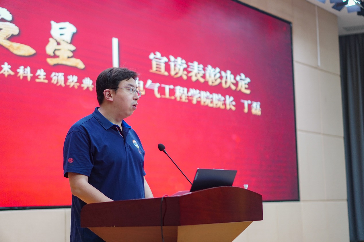 yl6809永利官网院长丁磊宣读表彰决定。经年级推荐、学院评定审核,决定对杨梓轩等28名同学授予“电气之星”优秀个人荣誉称号,决定对19级6班等授予“电气之星”优秀集体荣誉称号。