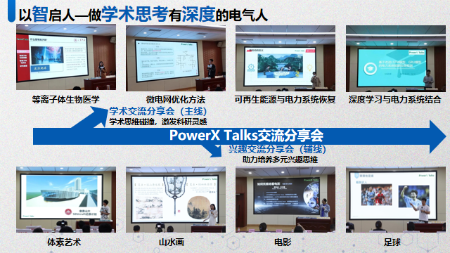 培育多维志趣,电亮青春色彩。电气研会坚持“智体美劳”多育融合,举办精品特色活动,营造有活力的校园文化氛围。研会举办学术论坛与科创竞赛,打造“PowerX Talks” 学院品牌交流分享会,举办“全面运动季”、“球动你我”系列体育活动,开展美育艺术节系列活动,创新劳动教育活动形式,以内容丰富、形式多样的活动培育电气学子多维志趣,推动电气学子全面发展。
