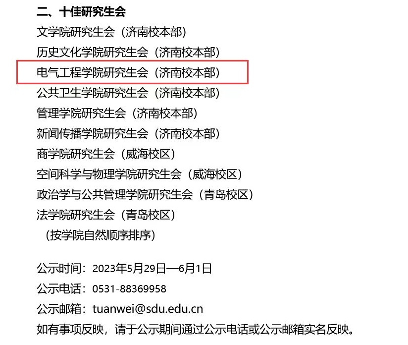 2023年5月28日,山东大学2022-2023年度院级研究生会述职评议会落下帷幕。经过材料申报、线下答辩等环节,我院研究生会荣获山东大学“十佳研究生会”荣誉称号。