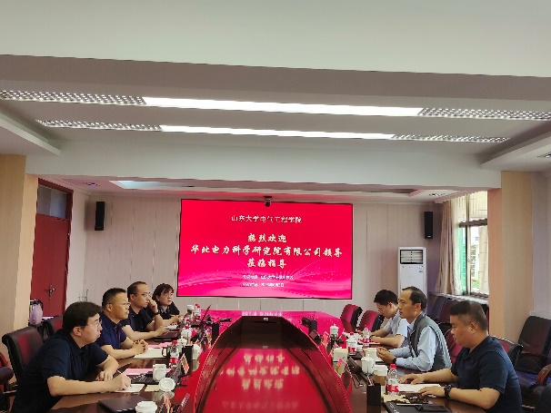 殷录民热烈欢迎刘辉一行。他表示,这是华北电科院第一次来学院进行交流访问,双方要加强联系建立紧密合作关系,并通报了近期学校科研和行业发展政策;丁磊表达了对刘辉一行的欢迎,并介绍了学院近年来围绕国家战略需求,稳步推进有组织科研的情况,阐述了学院科研发展的理念和思路;孙媛媛介绍了学院的基本情况、科研方向以及取得的成果。