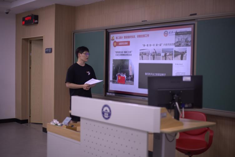武汉大学电气与自动化学院党总支纪检委员、研究生2021级第三党支部党支书陈逸珲展示了支部的活力和支部成员的成绩,并分享落实组织生活、尽善支部工作,夯实基础党务、严谨组织规范的建设经验。他表示,以规范垒砌向党之心,以学习淬炼崇政之心,以服务铸就为民之心,铭记在支部的每位党员心中。