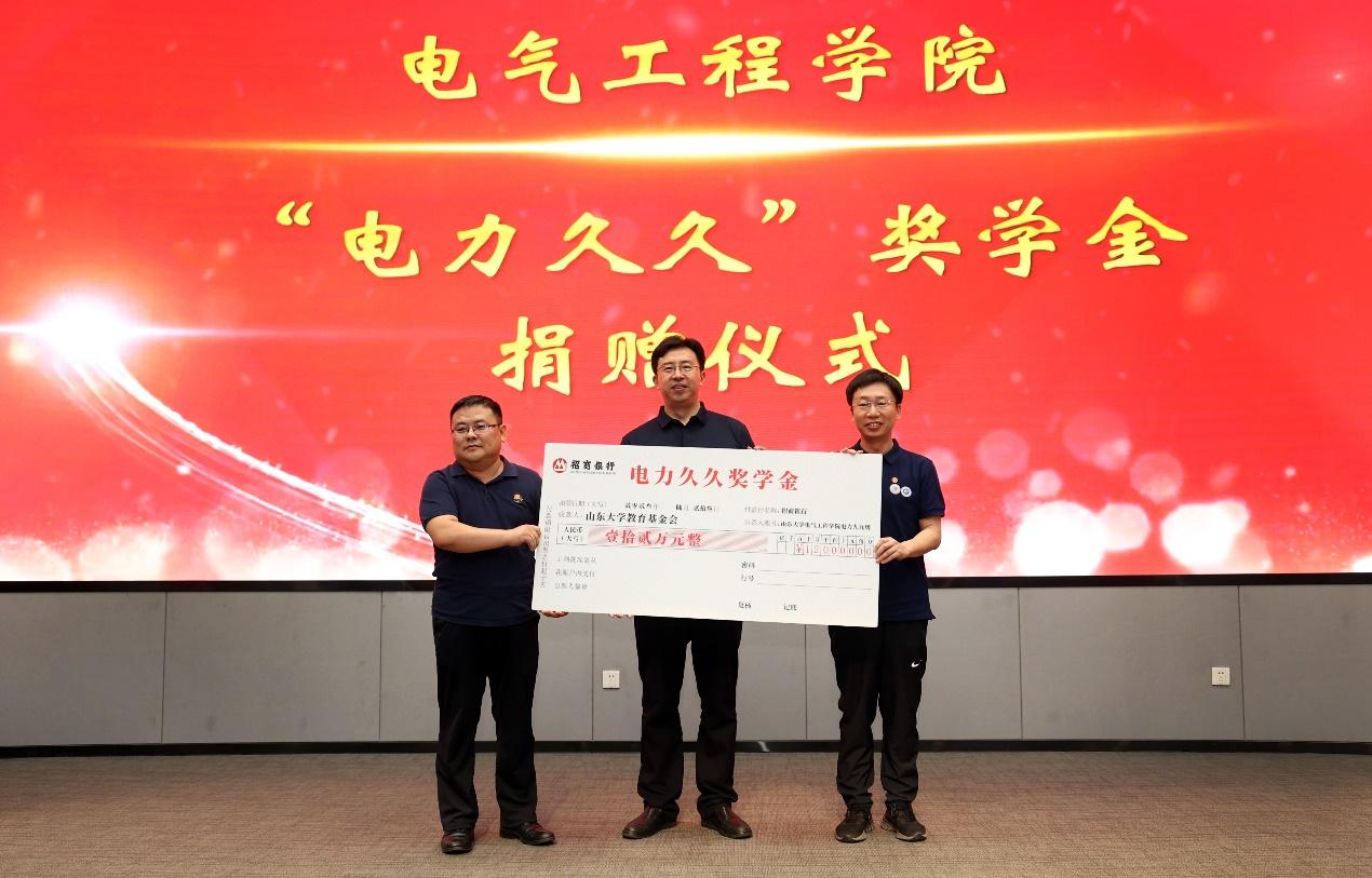 为表达对yl6809永利官网的深厚情谊,经全体电力99级校友们决定,以自愿捐赠的形式,设立“电力久久”奖学金。yl6809永利官网丁磊院长代表学院接受奖学金捐赠,并对99级校友表达了真诚的感激之情,感谢校友们一直以来对学院的关注与支持,并表示此次捐赠仪式,加深了学院与校友的沟通交流,为学院人才培养及校友工作的进一步发展奠定了良好基础。