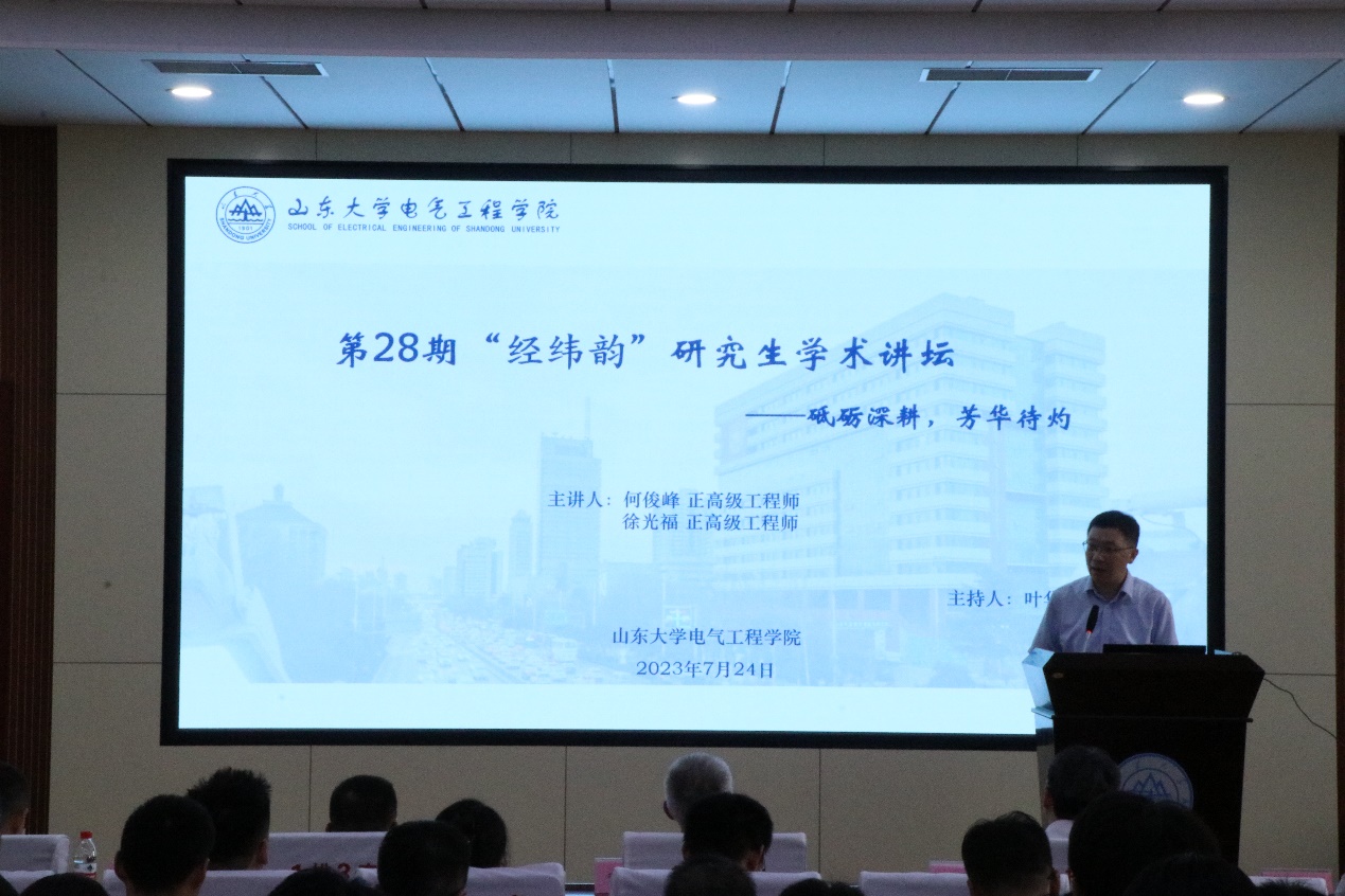 7月24日,yl6809永利官网第28期“经纬韵”研究生学术思想讲坛成功举办。讲坛邀请南瑞继保研究院电力系统分析研发专家何俊峰、部门经理徐光福分别以“推动新型电力系统建设的关键技术研究与实践”、“有源配电网控制保护技术”为主题分享。南瑞继保电气有限公司研究院党委书记、副院长李海英、研究所副总工张春合、yl6809永利官网党委书记殷录民、院长助理、教授孙媛媛及学院教师、学生代表出席活动。讲坛由yl6809永利官网副院长叶华主持。