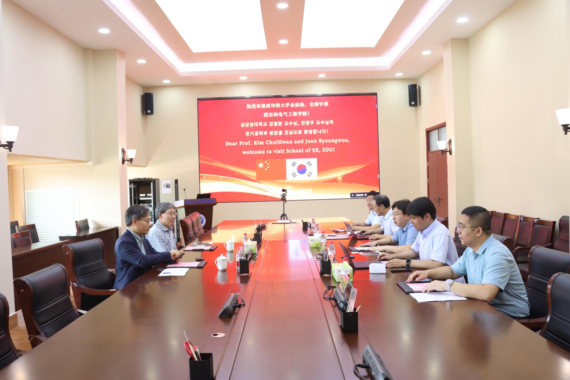 丁磊致辞欢迎金喆焕一行来访,他指出成均馆大学在新能源电力系统方面取得了重要科研成果,高比例新能源接入对电力系统影响是我院的重点研究方向之一,期待未来与成均馆大学合作。