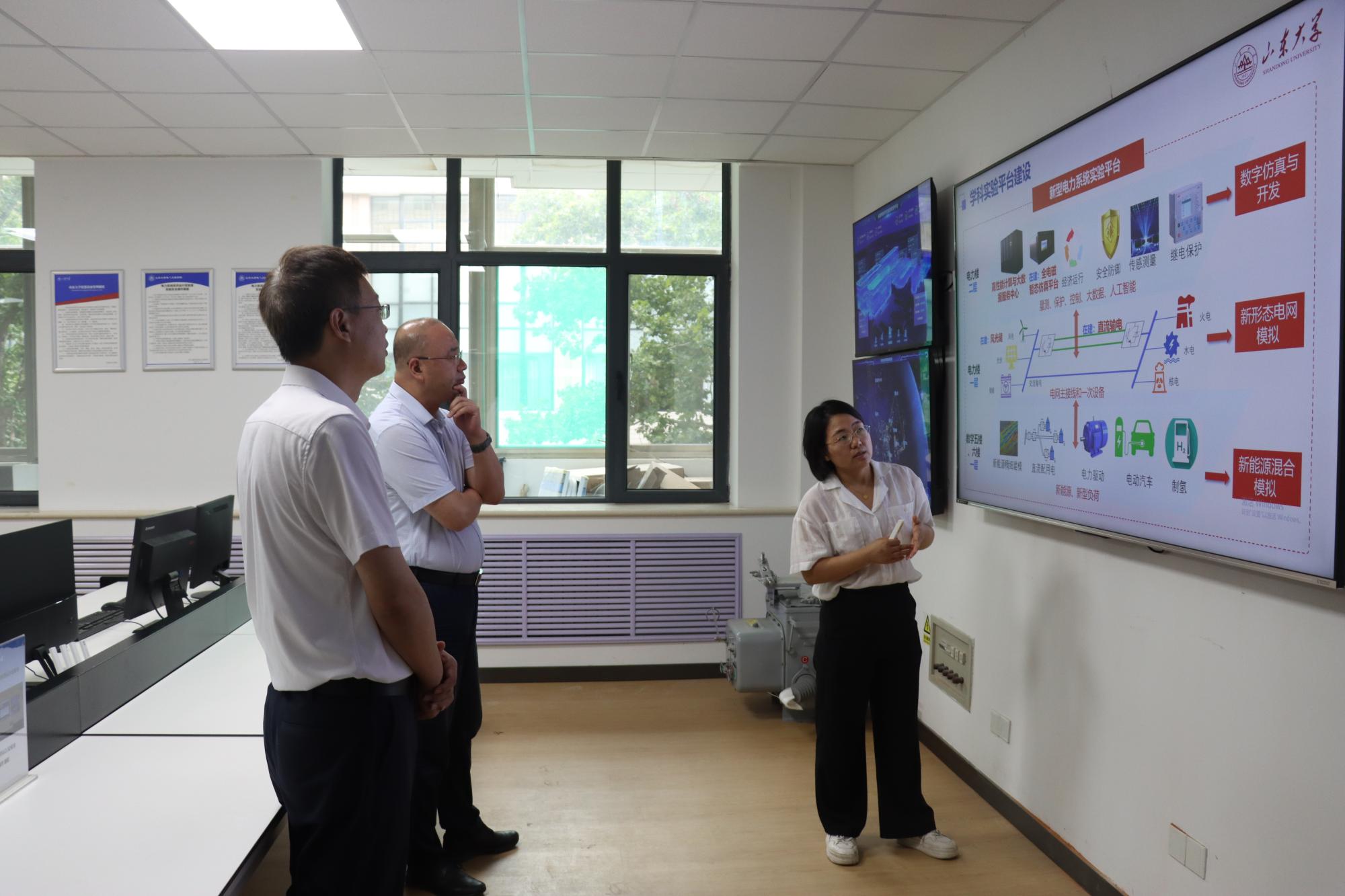 焦敏一行在学院副院长杨明陪同下参观了学院电力系统动态模拟与仿真实验室、电力系统经济运行实验室、特高压电网分析研究中心、实时仿真系统实验室。焦敏表示实验室建设贴合研究实际,功能齐全,给予高度评价。