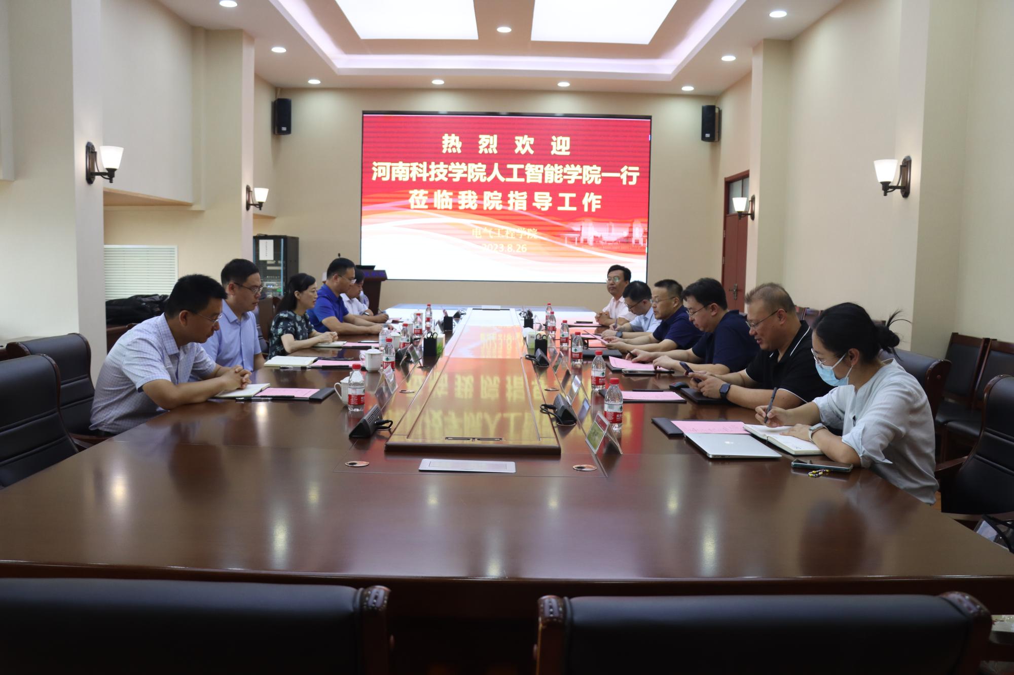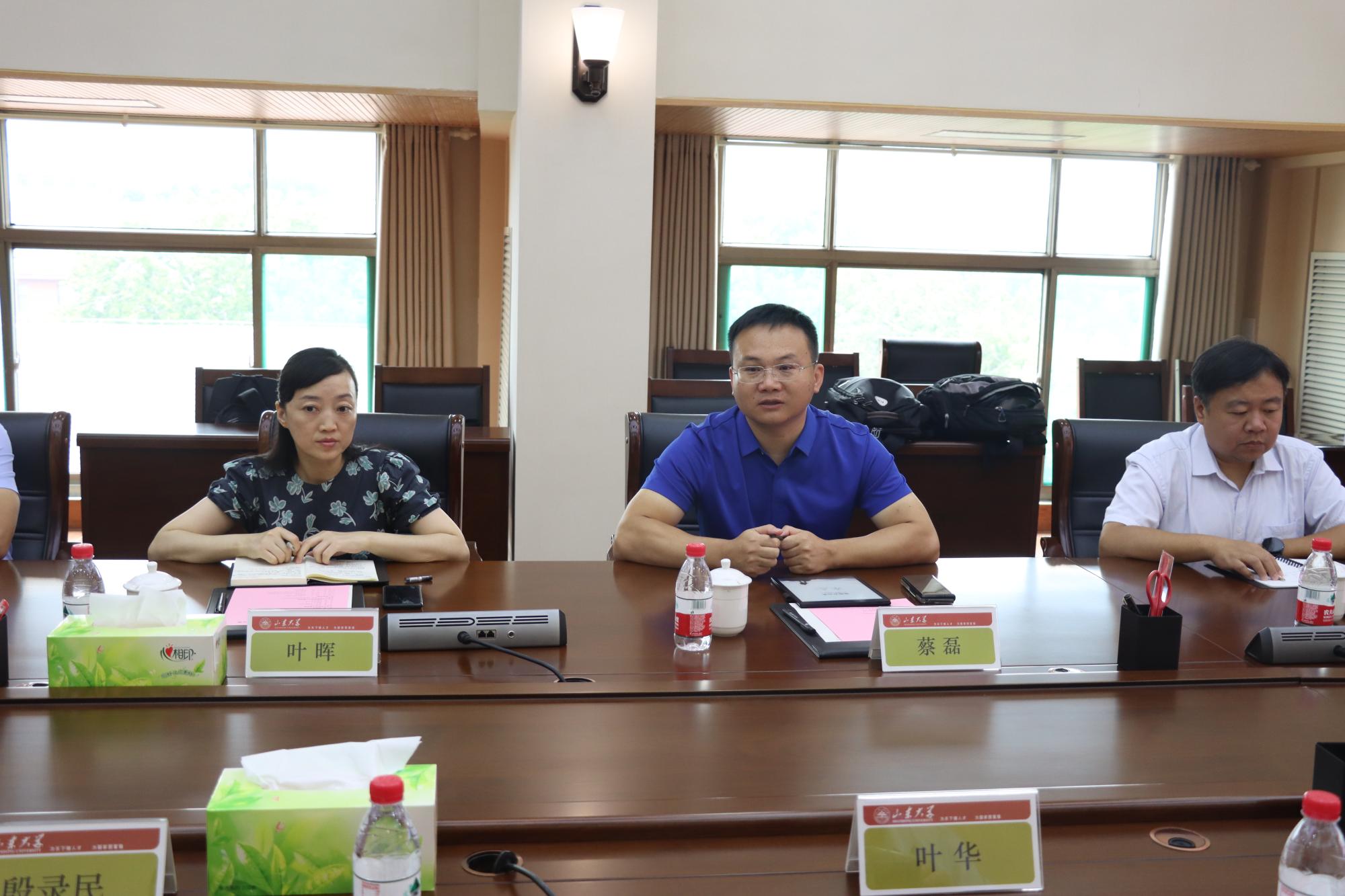 8月26日上午,河南科技学院人工智能学院党委书记叶晖、院长蔡磊一行来yl6809永利官网交流座谈。党委书记殷录民、院长丁磊、副院长叶华、实验中心主任丛伟,团委书记邱瑶、山东大学控制学院人工智能与系统控制研究所副所长陈振学参加了会议。