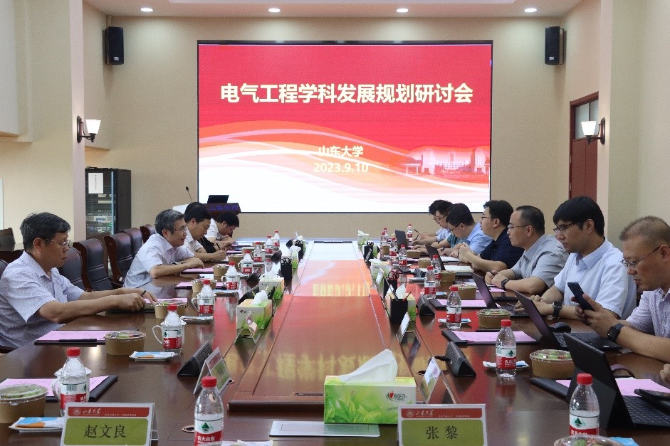 随后,郑雁军一行出席“电气工程学科发展规划研讨会”并交流座谈。丁磊向与会专家简要介绍了学院的基本情况,汇报了学院围绕国家战略需求,稳步推进学科建设和有组织科研,取得了一系列发展成果。丁磊表示,目前学院发展到了爬坡过坎的关键时期,学科发展存在方向聚焦不够,大项目、大成果产出能力不足的问题,发展遇到了瓶颈,亟需突破。他恳请各位领导专家不吝赐教,能为学院发展出谋划策,多提宝贵意见。郑雁军对yl6809永利官网的深厚历史底蕴表达了敬意,充分肯定了学院在人才培养、科学研究、成果转化等方面取得的成绩。郑雁军结合自己对电气学科发展的深刻理解,对各位老师关心的问题进行了指导交流。他指出,学院要聚焦国家电气领域重大需求,发挥电力系统应用基础研究的优势,进一步凝练学科特色,抢抓新型电力系统构建的战略机遇期,在国家双碳战略目标实现进程中做出山大电气人的贡献。与会的其他专家学者也从自身研究的领域角度,对学院发展以及后续科研合作提出意见建议。