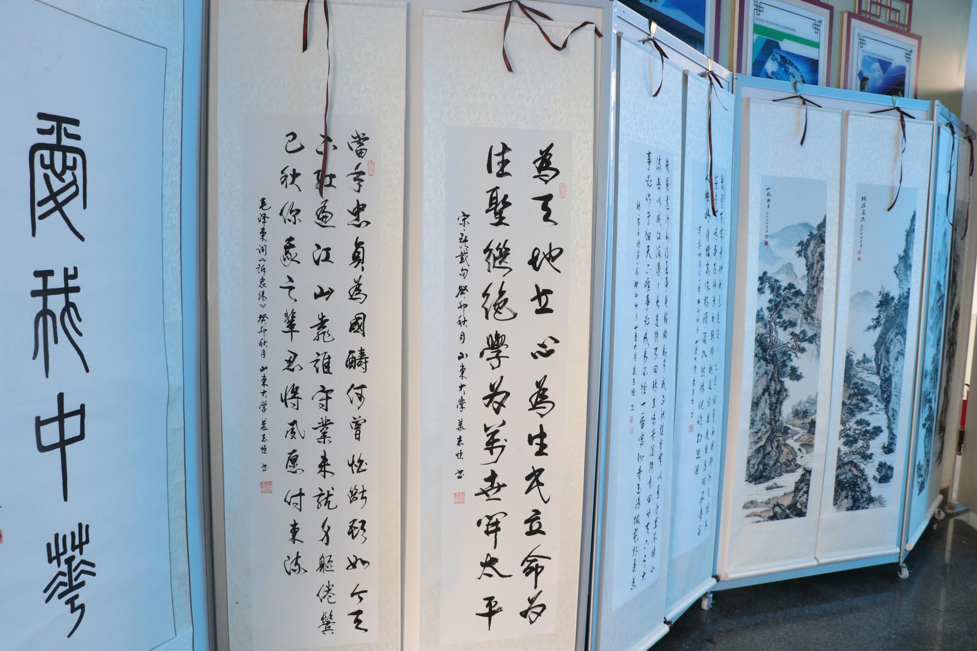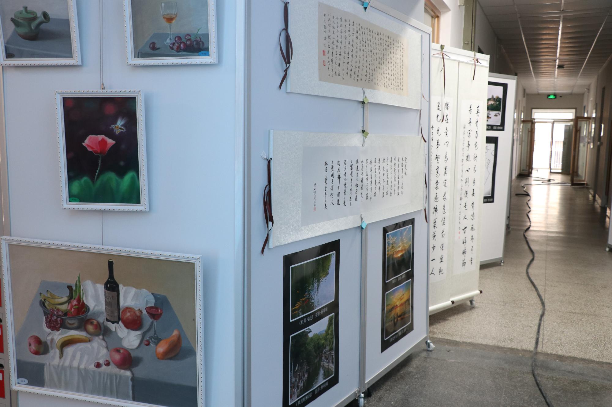 本次活动得到学院在职教工和退休老同志积极响应和大力支持,大家精心准备作品,踊跃参展。送展作品门类广泛,有书法、绘画、摄影、手工艺制作等,经过充分比对和精心挑选,50余幅作品于10月23日重阳节在学院电力楼一层大厅展出,参展作品形式别具一格,内容丰富多彩,紧扣时代主题,充满正能量。作者笔墨精妙、作品栩栩如生,充分展示了教职工爱国爱党和爱校如家的深厚情怀,展现了新时代昂扬向上,拼搏奋进的精神面貌,作品一经展出,吸引了众多师生及书画摄影爱好者驻足欣赏。