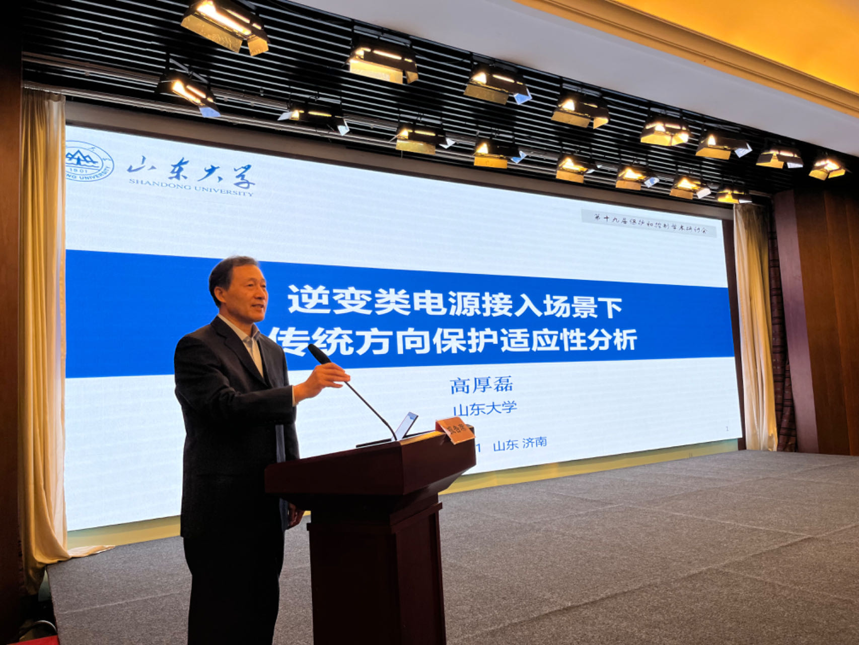 会议邀请到中国工程院院士、天津大学王成山教授等十四位专家做大会报告,举办了智能运维和技术改造、发电厂新能源场站和储能站继电保护、配电网保护控制三场分组交流。我院高厚磊教授做了题为《逆变类电源接入场景下传统方向保护适应性分析》的主旨学术报告。会议组织参观了济南兴隆站新一代高可靠二次系统试点工程、泰安配电网分级保护应用项目,为我院师生提供了宝贵的现场考察和学校交流机会。