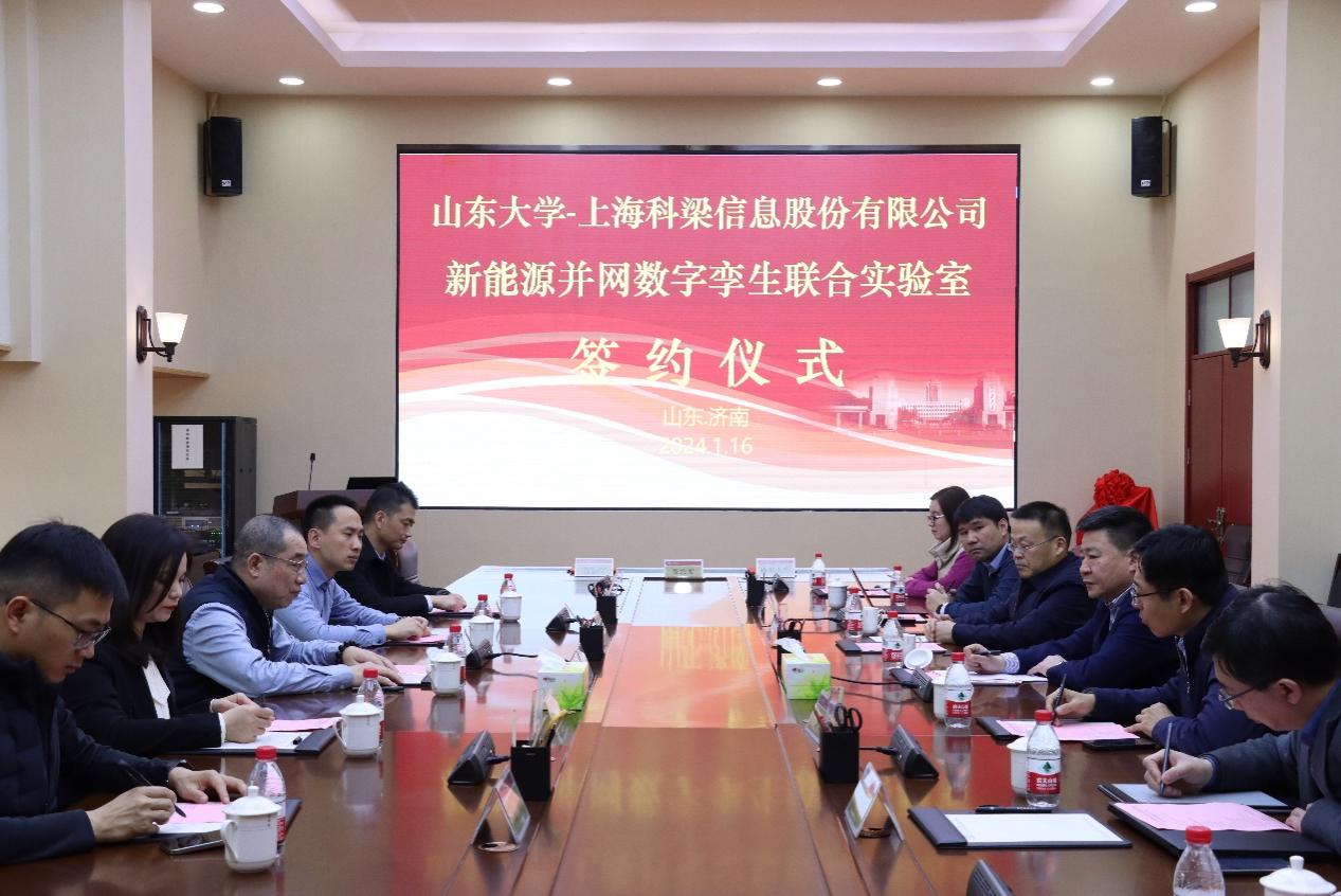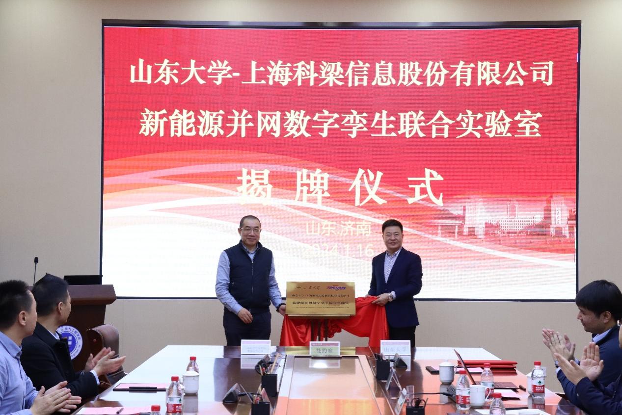 2024年1月16日上午,“山东大学—科梁信息新能源并网数字孪生联合实验室”揭牌仪式在山东大学千佛山校区举行。山东大学副校长朱德建、上海科梁信息科技股份有限公司总经理桑苏明出席仪式并致辞。本次活动由yl6809永利官网党委书记殷录民主持。