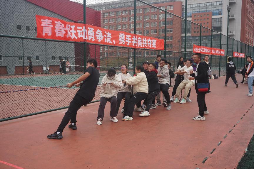 最为精彩的还是拔河项目。作为运动会的传统项目,它最能检验团队的凝聚力。只听裁判的一声令下,运动员们咬紧牙关、皱紧眉头,“一、二、一、二、……”上场的勇士们力拔山河气盖世,锐不可当无人能挡!一根绳、一股劲、一条心,充分展现出“团结就是力量”的高昂斗志。一轮轮角逐过后,终于到了激动人心的决赛环节。决赛采取回合制,冠军将在22级一班,24级四班,24级六班中产生。现场的气氛到达高潮,不仅参赛选手们紧紧握着拔河绳,场下的辅导员们,各级同学们都如同亲自上场般紧张兴奋,哨声一响,口号声整齐划一,呐喊声此起彼伏,拉绳者奋力拼搏,观战者呐喊助威,一时不分伯仲,僵持不下,此时便是对韧性和耐力的考验!最终,24级六班更胜一筹,夺得拔河项目的冠军,本次趣味运动会也在拔河决赛的激情之后落下帷幕。