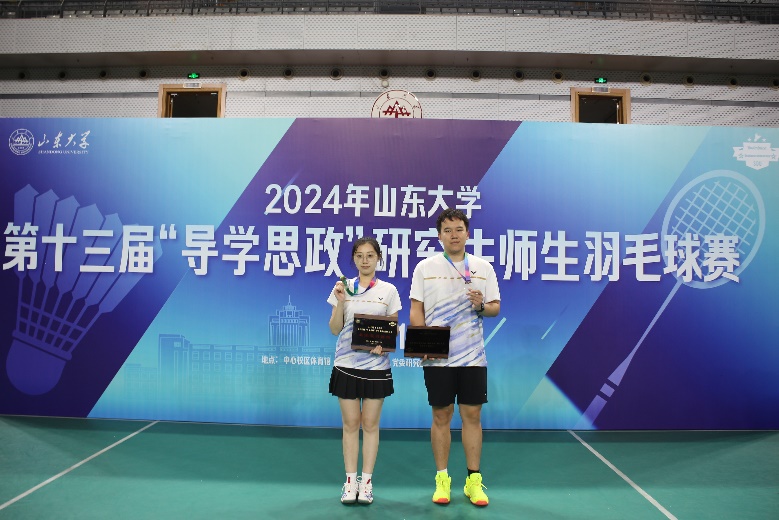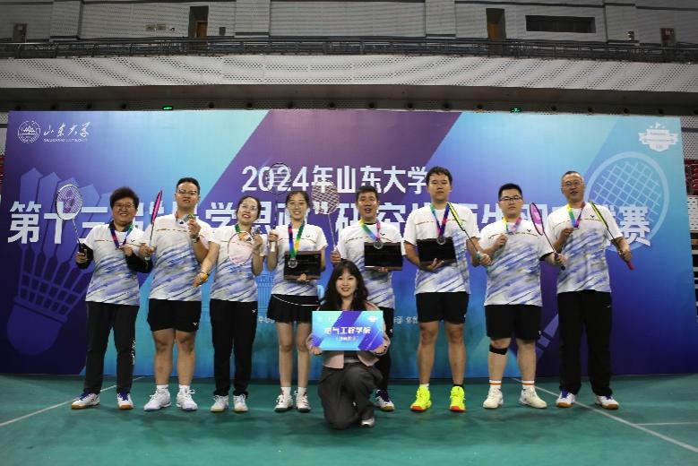 11月24日,由山东大学党委研究生工作部主办的山东大学第十三届“导学思政”研究生师生羽毛球赛在中心校区综合体育馆圆满收官。yl6809永利官网师生代表队由党委副书记宋思利,导师贠志皓、王冠,研究生高文豪、刘永鹏、王梦雪、林想、刘率然等担纲组成,在为期两天的赛事中球队表现出色,一路过关斩将,最终荣获团体季军,刘率然、林想获得“最佳混双搭档”奖,创下学院在该项赛事中的历史最佳成绩。yl6809永利官网师生代表队在比赛中充分彰显了学院师生拼搏进取、积极向上的精神风貌,展示了阳光体育的魅力,并从中收获了友谊、快乐与成长。