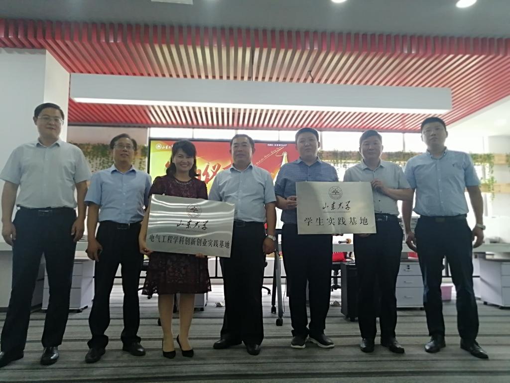 签约仪式上,刘相宜和徐晓梅共同为“学生实践基地”和“电气学科创新创业实践基地”揭牌。李功华和徐晓梅代表校企双方签署合作协议。两个基地的设立旨在将山大综合智力资源与企业资源结合起来,通过开展大学生创新创业活动,培养综合素质高、实践创新能力强的世界一流人才,打造电气学科科技成果转化、高新技术企业孵化、创新创业人才培养、产学研结合的平台,为电力事业作出更大的贡献。