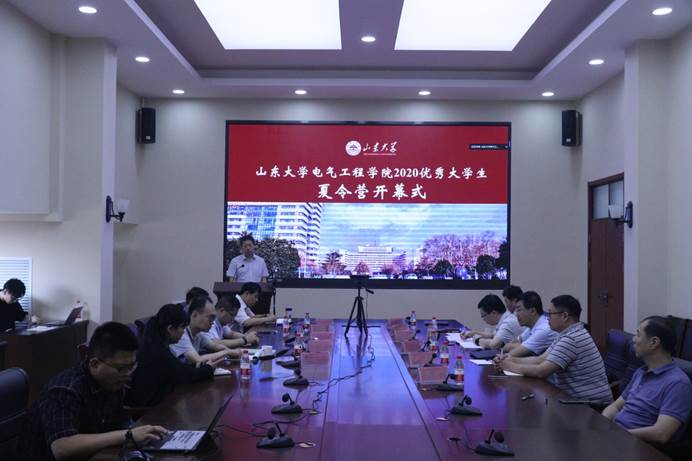 20日上午8:30,夏令营开营仪式在电力楼5层会议室举行,全体营员通过线上转播形式收看。yl6809永利官网常务副院长张恒旭、副院长李清泉、各研究所教师代表在千佛山校区电力楼5层会议现场出席,学院党委副书记宋思利主持开营。在开营仪式上,张恒旭代表学院致辞。他在致辞中历数了我院成立七十多年的历史沿革和光辉历史,对全体营员表示热烈欢迎,并为本次夏令营授旗。往届夏令营学生代表吕华灿通过远程连线方式分享了自己参加夏令营和一年多研究生生活的体会心得。在随后的环节,李清泉向大家介绍了保研与招生培养政策等信息,各研究所的教师代表全面介绍了各研究所的情况,使各营员充分了解了yl6809永利官网研究生的招生信息。