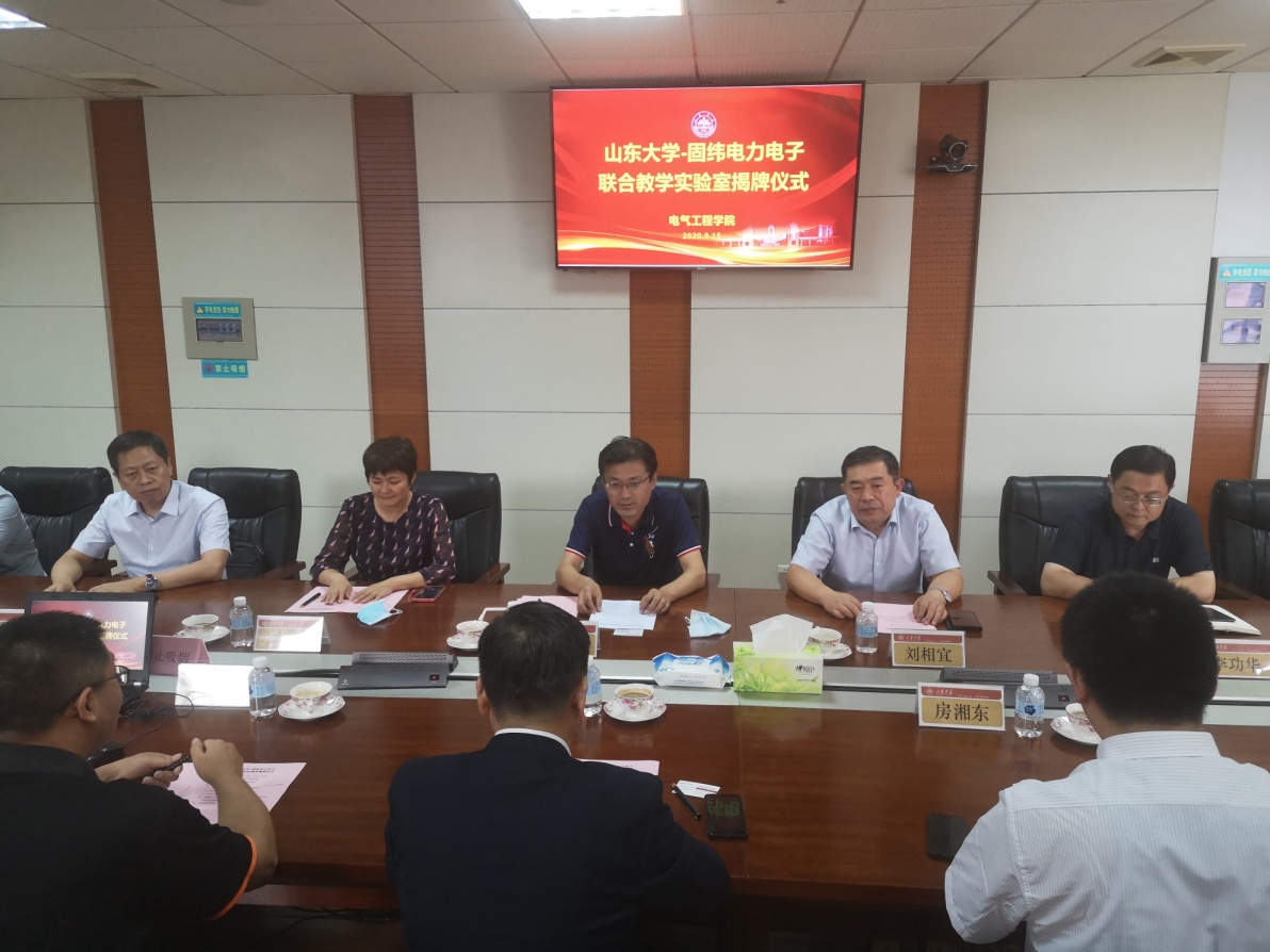 9月15日,山东大学与固纬电子(苏州)有限公司举行校企合作“电力电子联合教学实验室”揭牌仪式,由yl6809永利官网副院长杨明主持,资产与实验室管理部部长王浩、资产与实验室管理部副部长刘健、yl6809永利官网党委书记刘相宜、yl6809永利官网常务副院长张恒旭、固纬电子大中华区副总经理郭国栋出席会议。