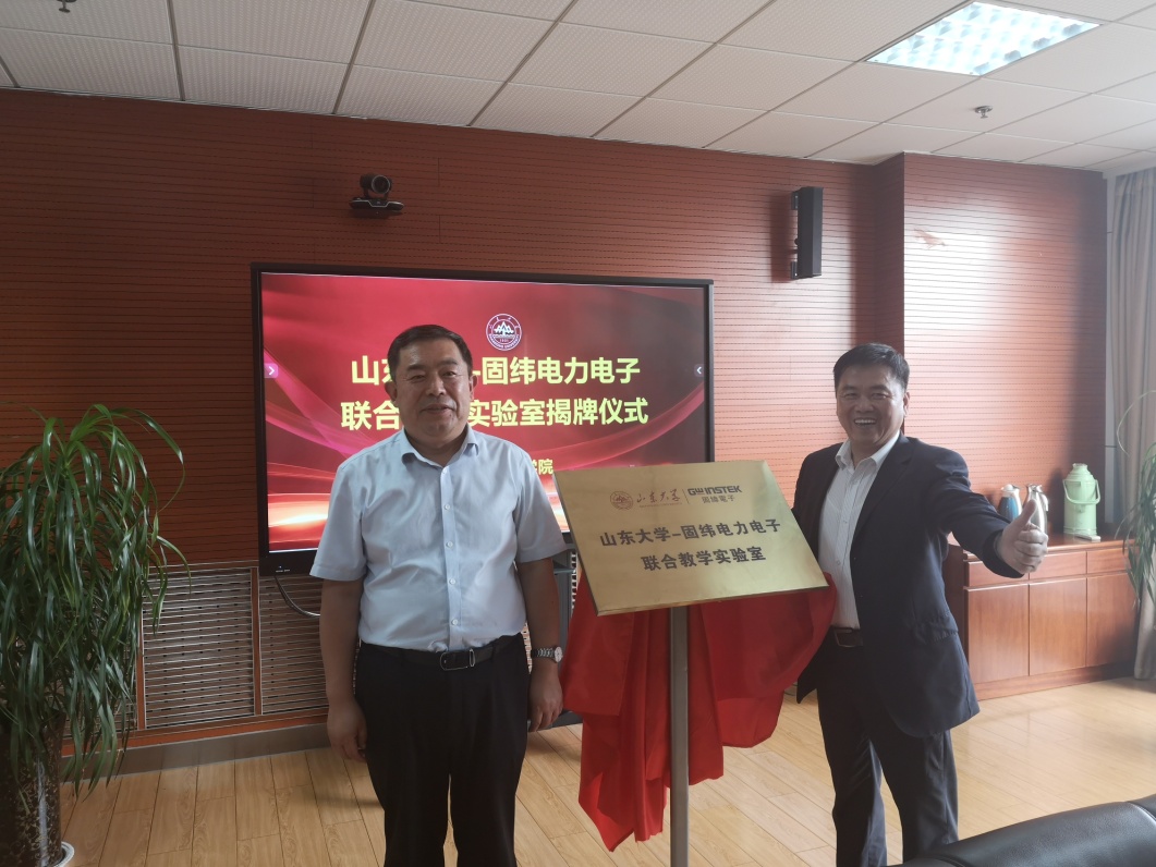 yl6809永利官网党委书记刘相宜与固纬电子大中华区副总经理郭国栋共同为山东大学—固纬电力电子联合教学实验室揭牌。