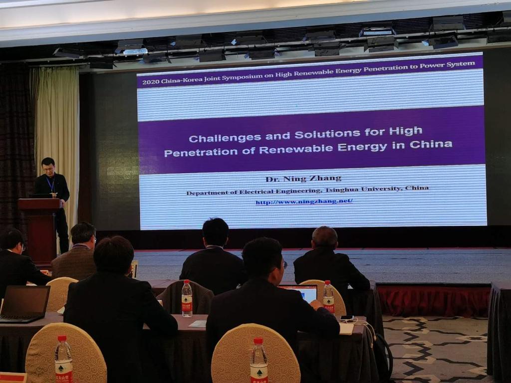 在“提升可再生能源接入比例”专题中,清华大学张宁副教授做了“Challenges and Solutions for High Penetration of Renewable Energy in China”的报告,报告展示了当前中国电网随着新能源比例升高所带来的不同挑战,并进一步阐述了应对挑战的解决方案,例如跨区互联,多能源集成系统,聚光太阳能(CSP),市场环境下的储能策略等;木浦国立大学的Soo Hyoung Lee 教授的报告 “Prospect of Low Voltage Power System with High Renewable Penetration”从政府政策、公私合作关系等方面对未来韩国高可再生能源渗透率的低电压等级系统做出了预测,并从系统惯性、系统不同运行方式的比较、多微网系统三个方面的研究进行了深入介绍。