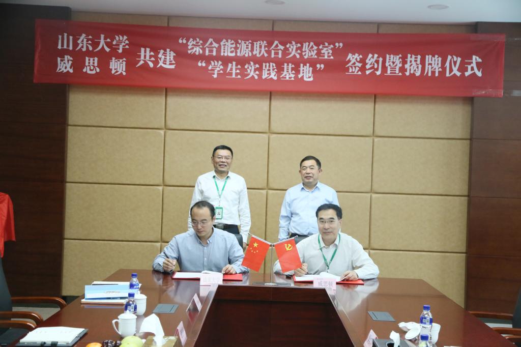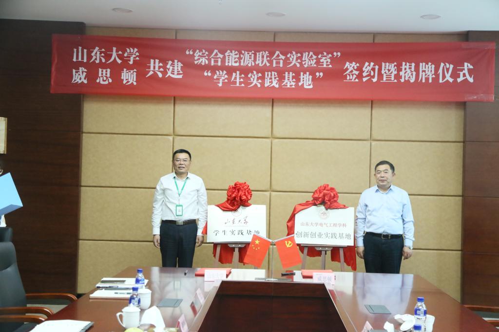 5月22日,yl6809永利官网与烟台东方威思顿电气有限公司共建综合能源联合实验室合作签约暨“山东大学学生实践基地”、“山东大学电气工程学科创新创业实践基地”揭牌仪式在烟台东方威思顿电气有限公司会议室举行。yl6809永利官网党委书记刘相宜、烟台威思顿电气有限公司董事长、总经理张侠出席活动并为实验室和两个基地揭牌。