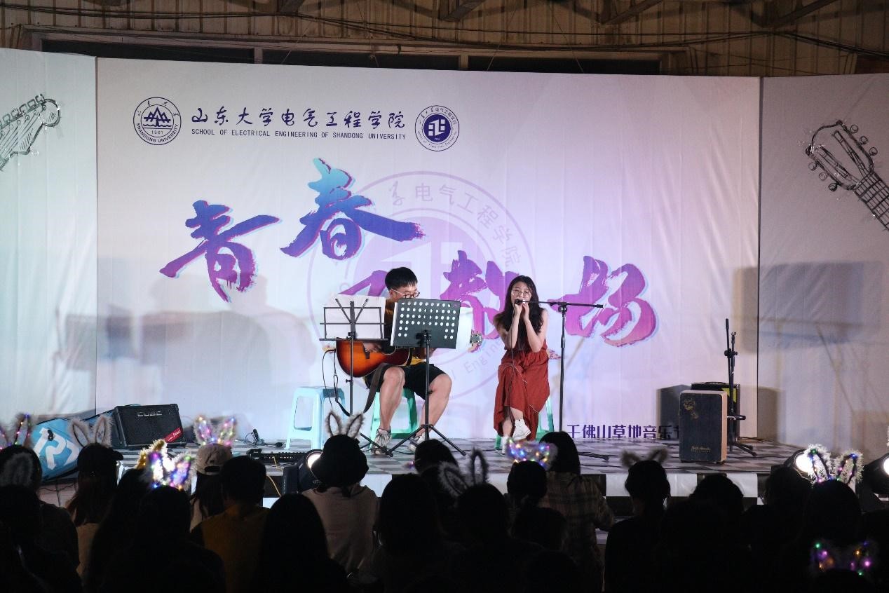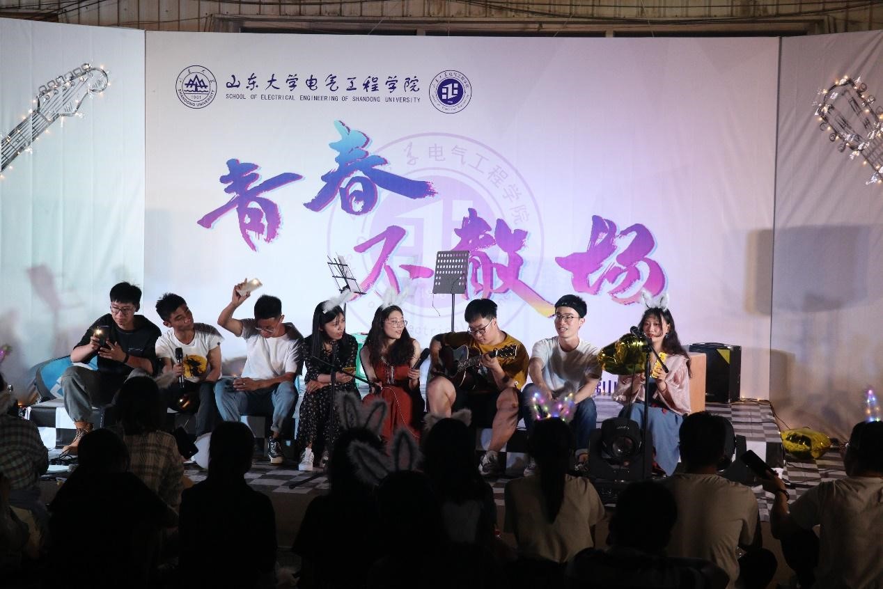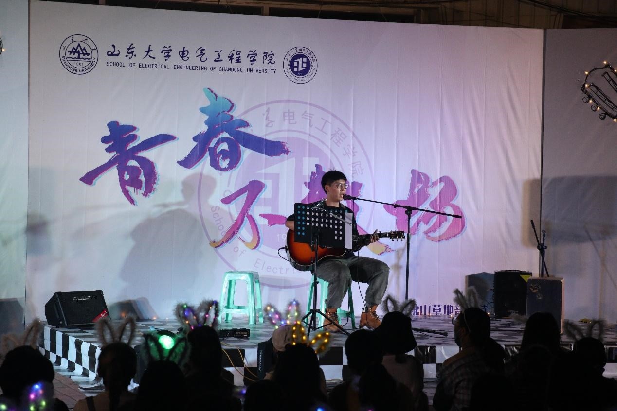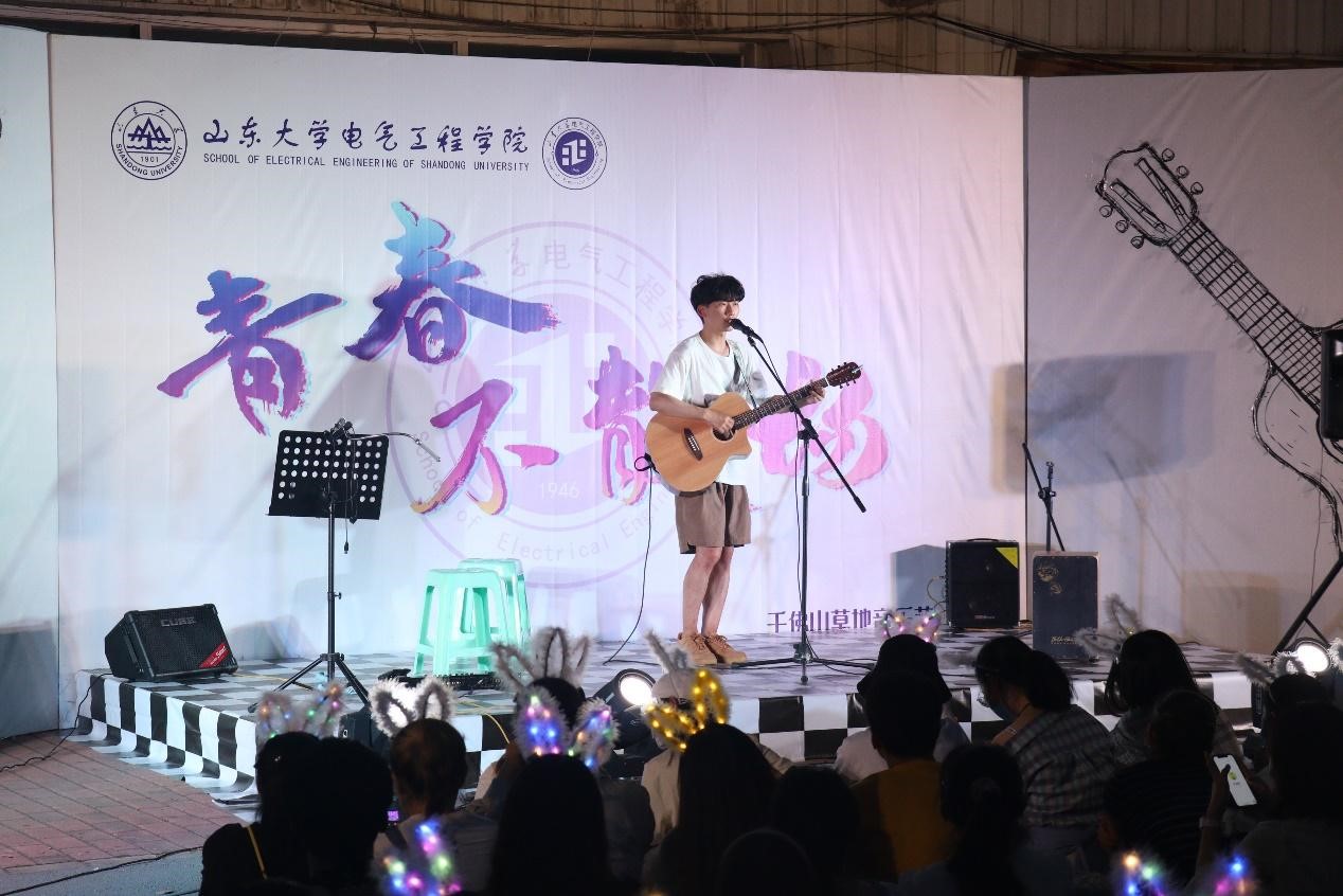 之后是由2021届毕业生王子龙带来的一首五月天的《知足》,当一阵风吹来,风筝飞上天空,为了你们而祈祷、而祝福、而感动,能够在最好的时间遇见山大,遇见电气,遇见大家,我们很知足。
