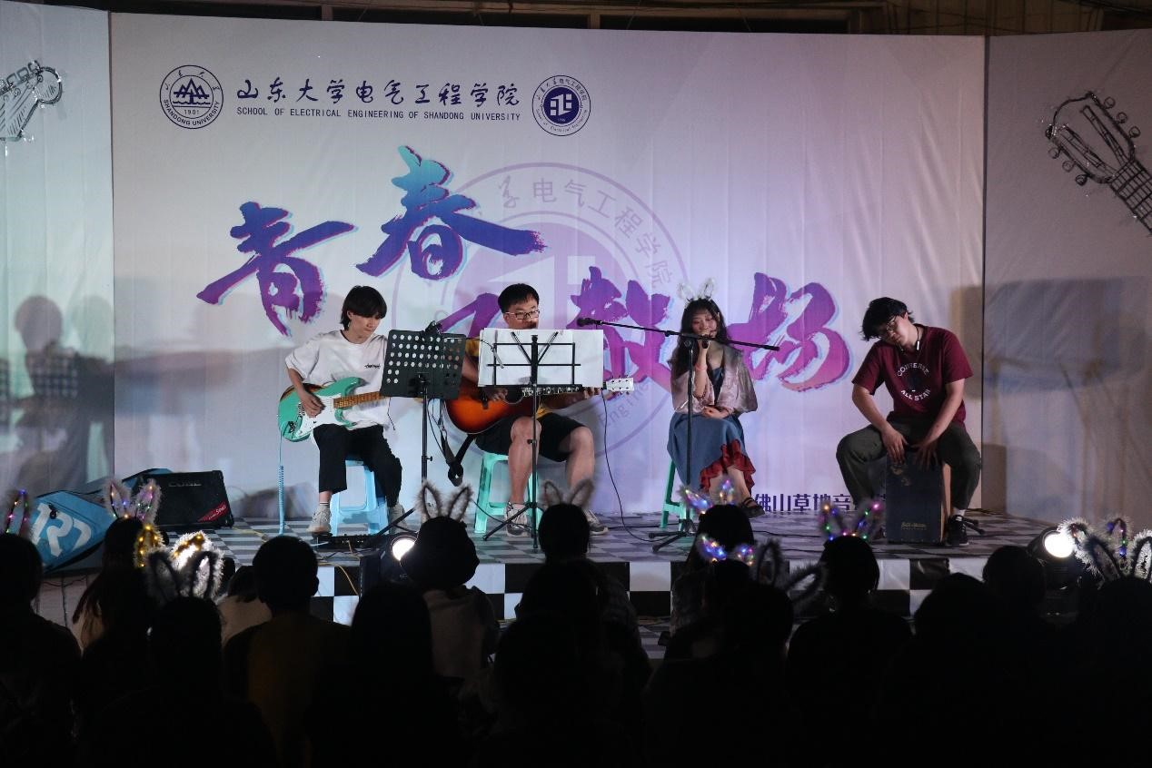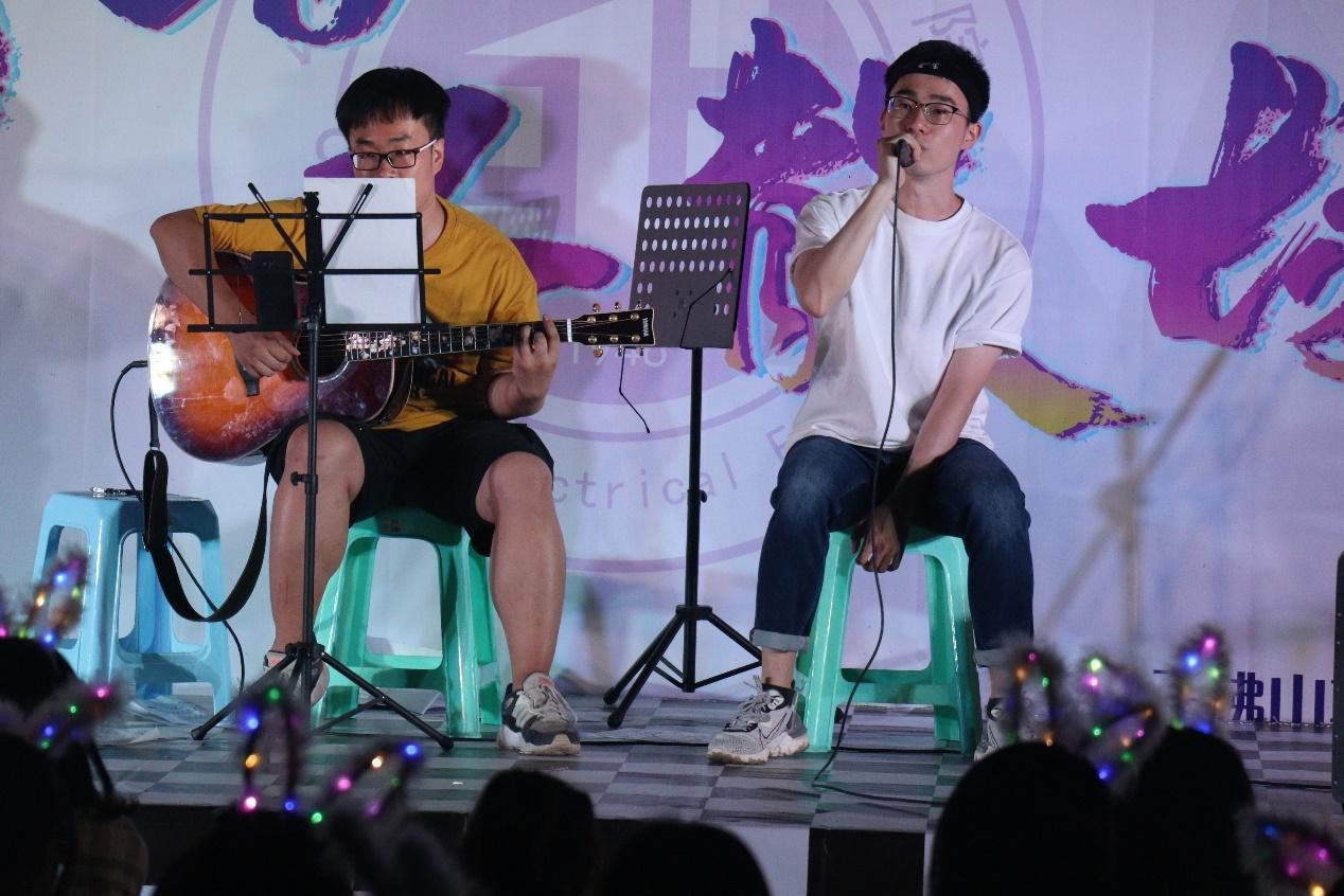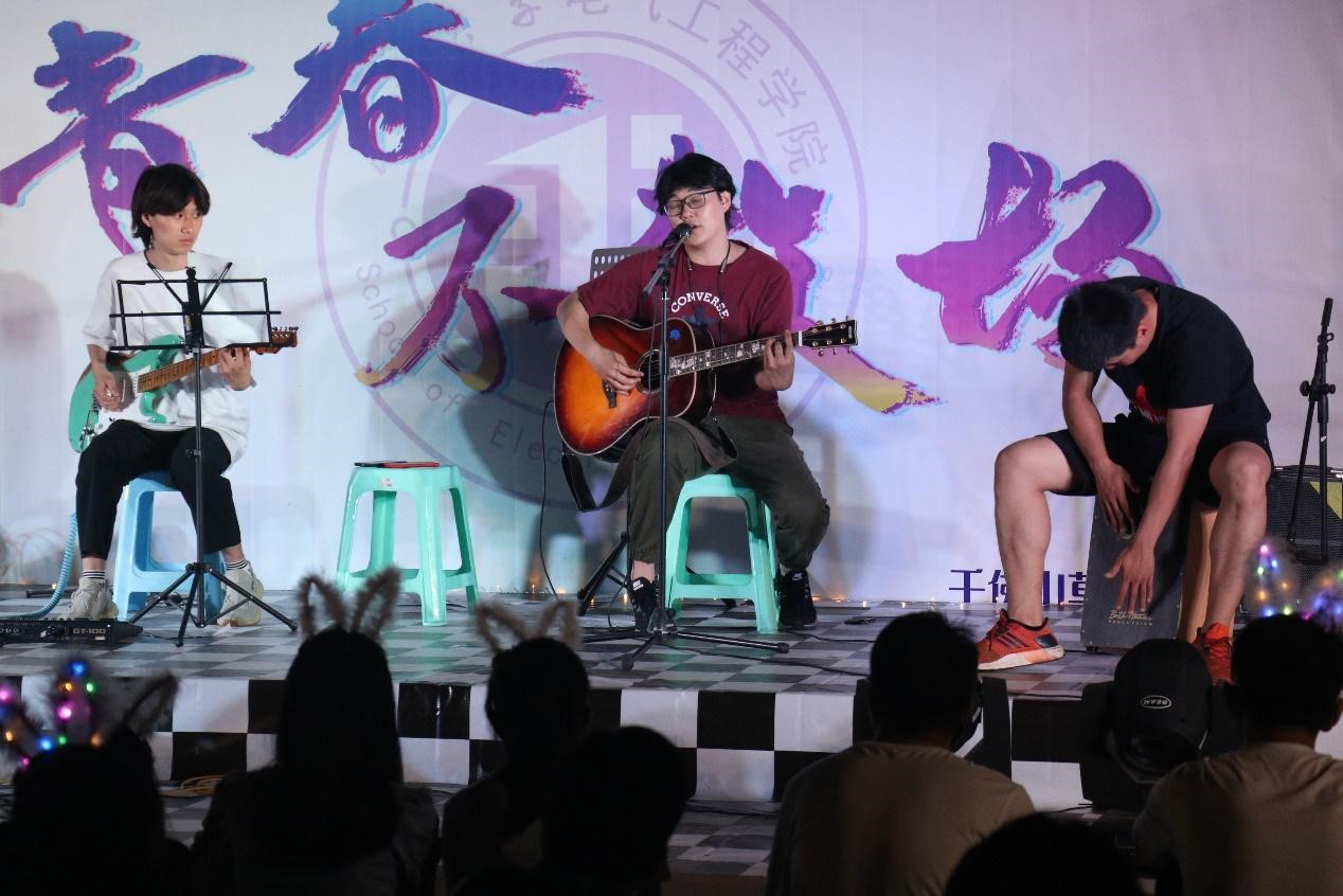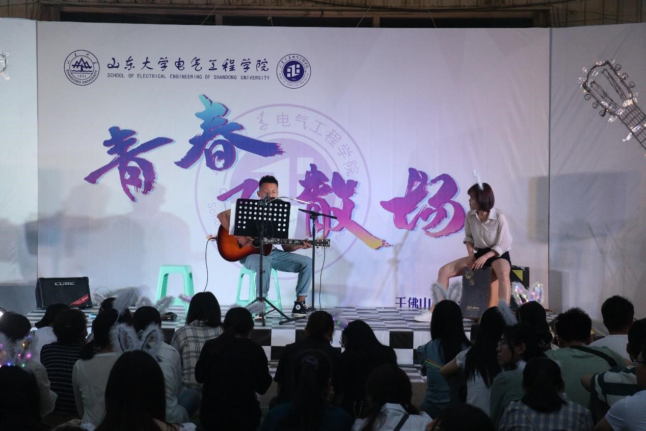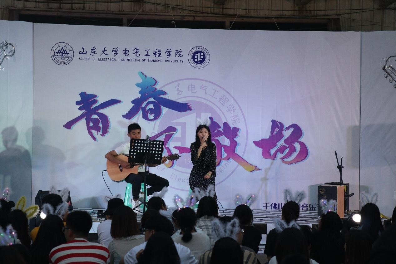 之后是由2021届毕业生王子龙带来的一首五月天的《知足》,当一阵风吹来,风筝飞上天空,为了你们而祈祷、而祝福、而感动,能够在最好的时间遇见山大,遇见电气,遇见大家,我们很知足。