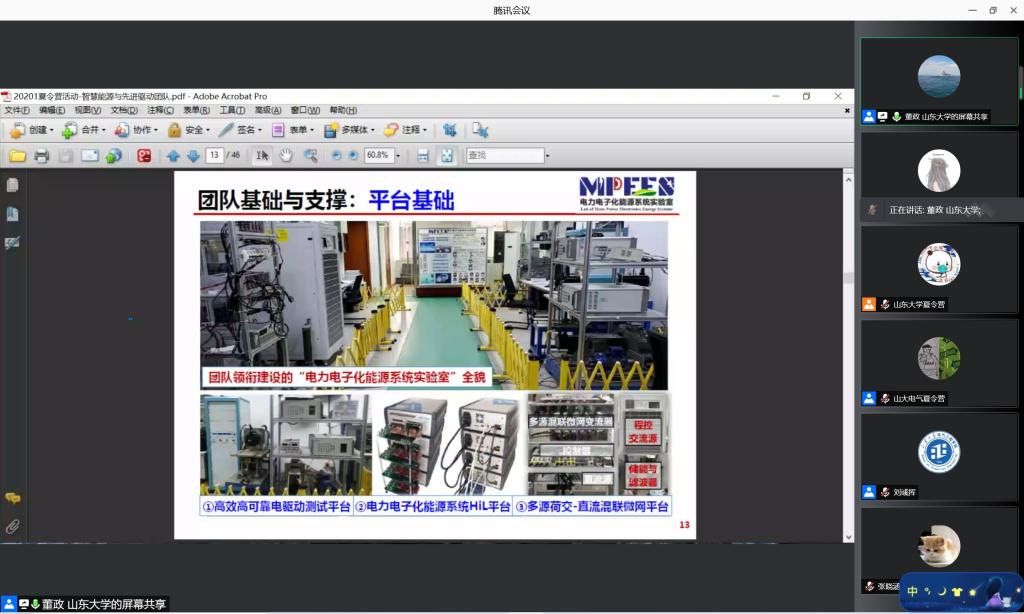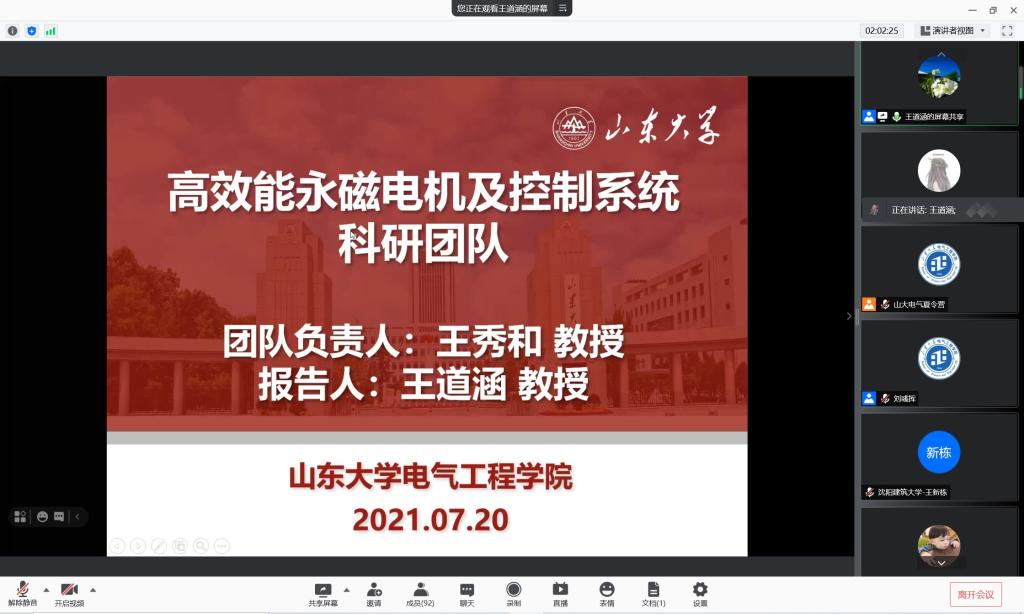 20日下午13:30,有四场学术报告在线上举行,分别邀请了先进电驱动、电能储存及无线传输科研团队的宫金林副教授,放电等离子体及其生物学应用科研团队的张远涛教授,高效能永磁电机及控制系统科研团队的王道涵教授,以及新能源汽车电力系统科研团队的王长江教授为大家介绍团队科研情况。宫金林老师介绍了团队在先进电驱动、电能储存方面的研究成果,张远涛老师具体介绍了放电等离子体方向的传统特色研究与新型交叉研究,王道涵老师从行业领域发展分析出发,介绍了新能源汽车系统、新能源发电系统、轨道交通系统等七个热点问题,王长江老师着重介绍了新能源汽车的发展动因、应用领域、发展规划以及电驱动系统。经过两天的学术报告,各营员受益匪浅,不仅充分了解老师们从事的科研方向,也对yl6809永利官网的科研实力有了初步的认识和了解。