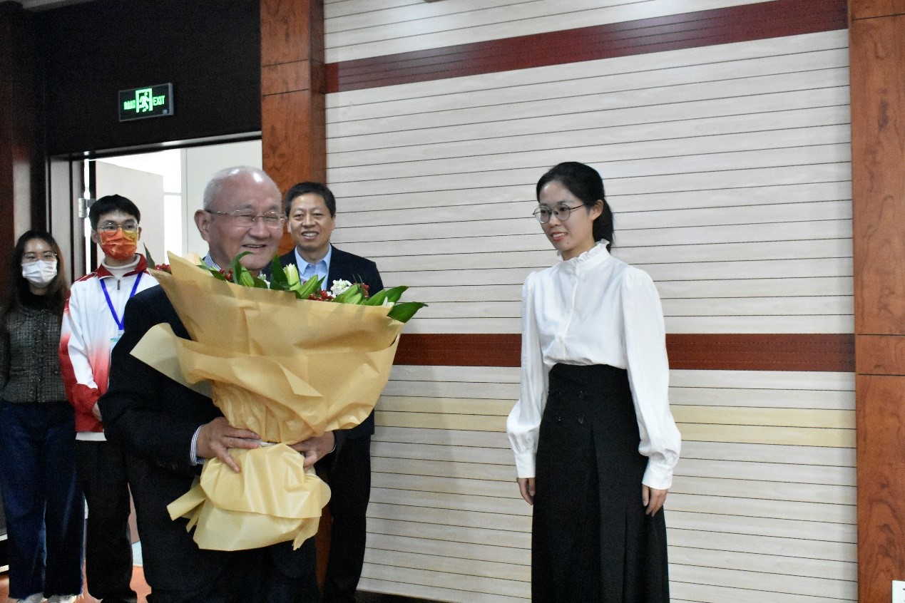 下午三点,秋风飒飒,细雨蒙蒙,在同学们殷切的盼望和注视下,薛禹胜乘车来到图书馆门口,对迎接的工作人员表示了亲切问候。到达报告厅后,学生代表献上了精心准备的花束。座谈会上,薛禹胜望着眼前满堂年轻的面孔,不禁感慨万千,思绪跨越这翻天覆地的一个甲子,与同学们分享了自己的求学经历。薛禹胜于1958年进入山东工学院,六十多年前在母校的青葱岁月依旧历历在目,大学就读期间,他历经三年自然灾害等恶劣物质条件和艰苦的学习环境的磨砺,练就了坚韧的意志,也刻骨铭心地感受到学习机会的可贵。“在航海发展的早期,人们只有帆船。人们可以利用顺风,却对逆风束手无策。但随着人们不断地尝试与团队间的配合,人们同样可以利用逆风在海面上驰骋。”薛禹胜用浅显易懂的比喻向学子们阐述了宝贵的人生经验。