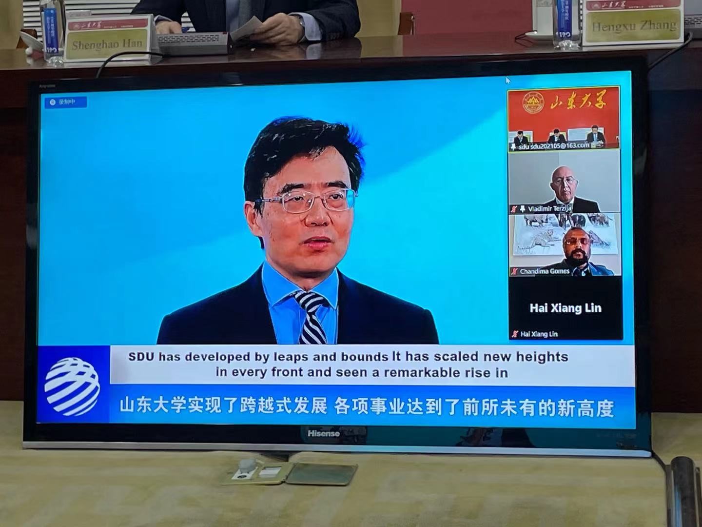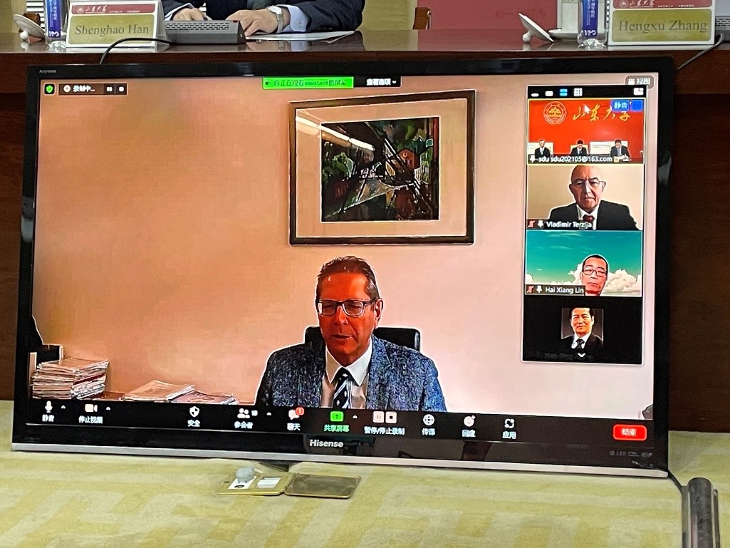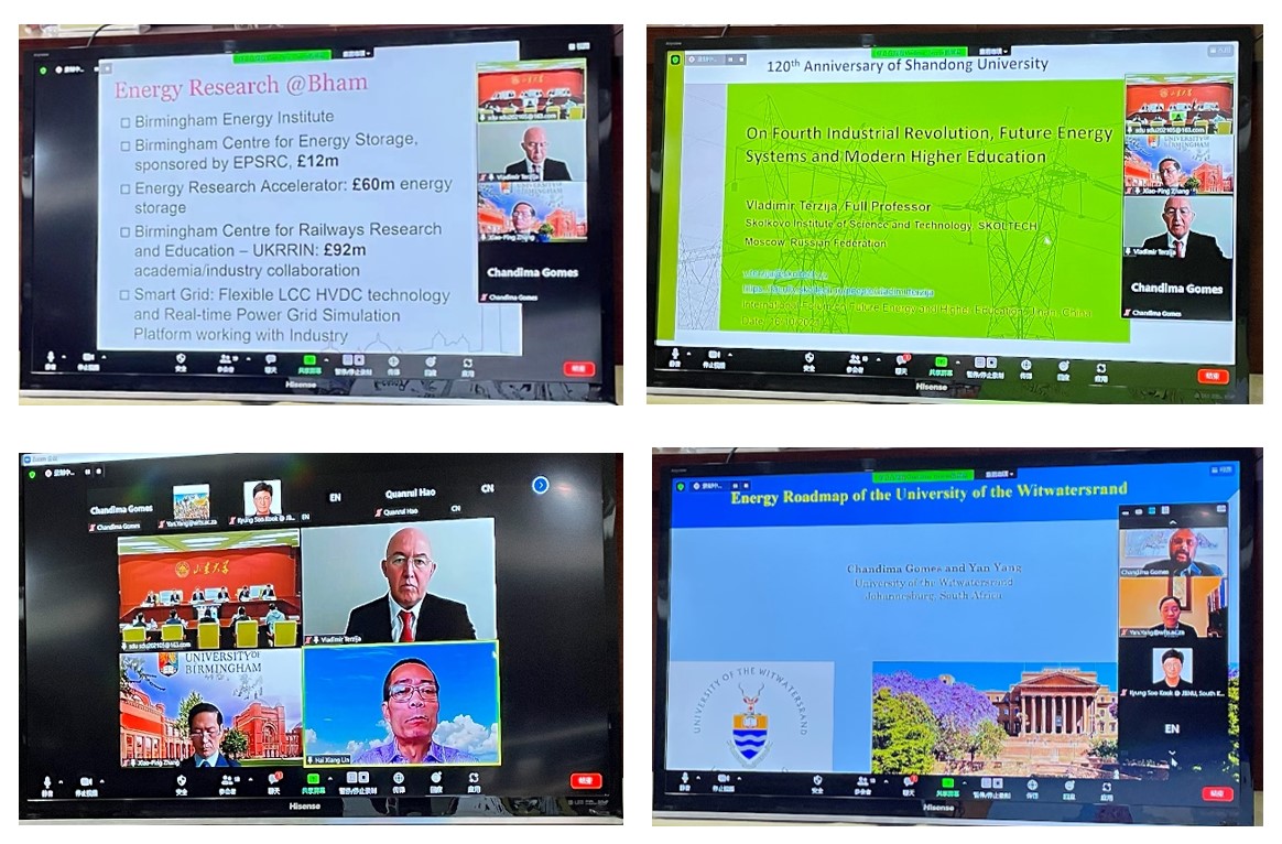 10月16日下午,由yl6809永利官网主办的山东大学全球大学校长论坛之未来能源与创新人才培养国际论坛在中心校区举行。来自全球能源互联网发展合作组织、英国伯明翰大学、俄罗斯斯科尔科沃理工研究所、德国慕尼黑工业大学、荷兰代尔夫特理工大学、南非金山大学、莫斯科动力学院、丹麦科技大学、韩国全北国立大学等10余所国际名校的专家学者以线上线下方式参加此次论坛,交流学术创新,探讨能源发展,共促人才培养。山东大学副校长韩圣浩出席论坛并致开幕辞,全球能源互联网发展合作组织秘书长伍萱先生、智利工程院院士Andres Bello大学前校长Jose Rodriguez教授、慕尼黑工业大学 Ralph Kennel教授出席论坛并致辞。yl6809永利官网常务副院长张恒旭教授主持论坛。
