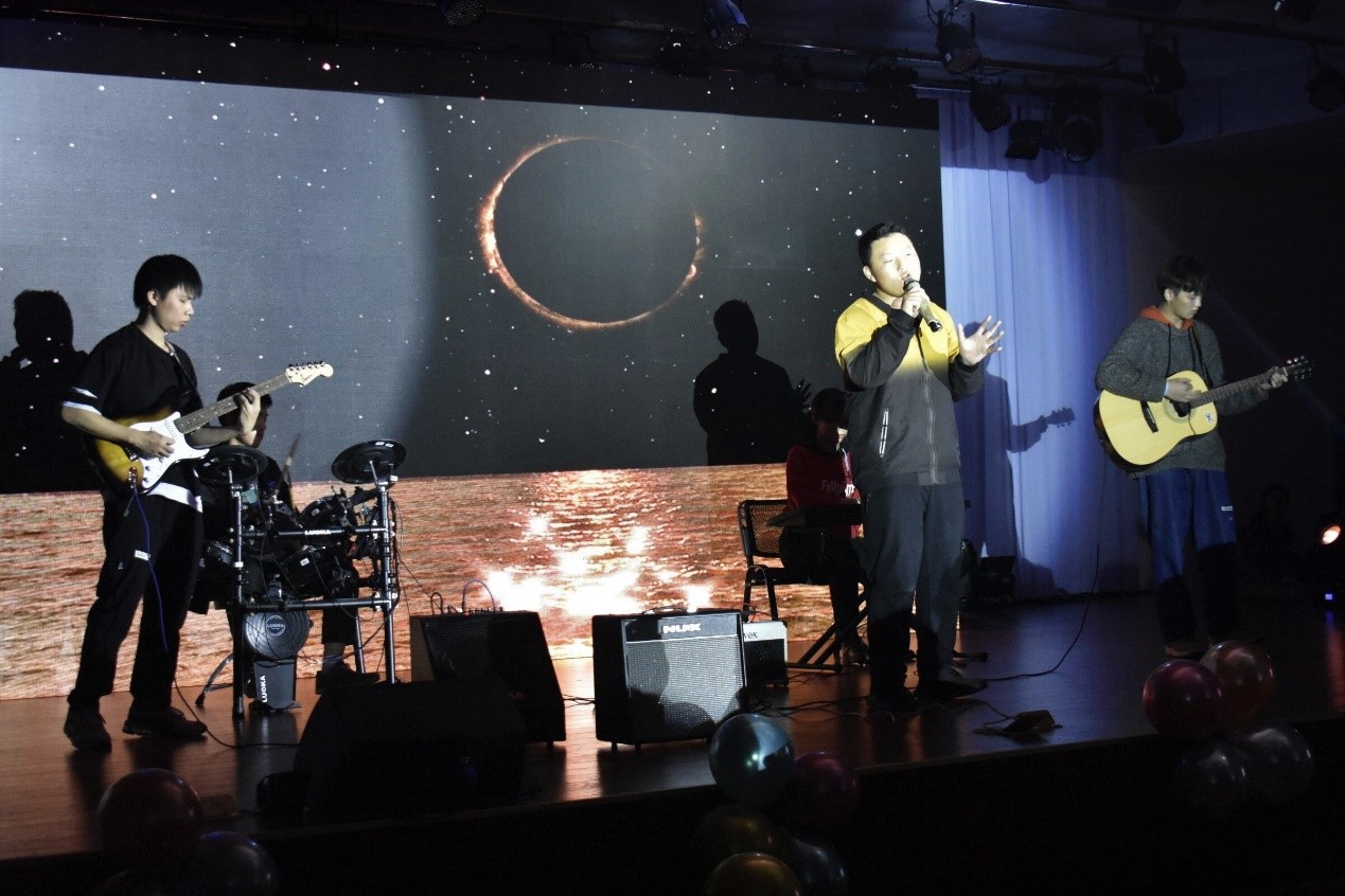 组织参与本次晚会的全体工作人员和表演者在现场彩排,摆设场地、调试设备、排演灯光,认真严谨的态度贯穿于每一个细节中。晚会以一段充满科技感的迎新视频开场,带领大家一同回忆了21级新生们初遇山大后两个月来的学习生活点滴。随着主持人慷慨激昂的开场白,2021级迎新晚会正式拉开了帷幕。