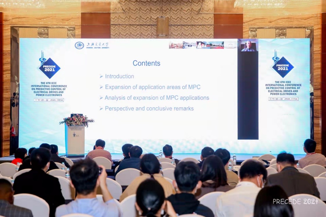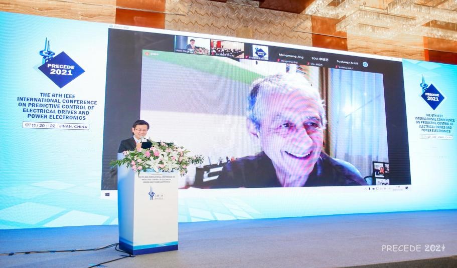 由电气与电子工程师协会(IEEE)主办,山东大学承办,慕尼黑工业大学、哈尔滨工业大学和中国科学院协办的2021年第六届电力电子与电驱系统预测控制国际会议(The 6th IEEE International Conference on Predictive Control of Electrical Drives and Power Electronics,IEEE-PRECEDE 2021),于2021年11月20日至22日在山东省济南市圆满召开。中国工程院院士、山东大学副校长李术才,哈尔滨工业大学前副校长徐殿国,智利工程院院士、安德烈斯·贝洛国立大学前校长Jose Rodriguez,IEEE-PRECEDE创会主席、德国慕尼黑工业大学教席教授Ralph Kennel,国家杰青、东南大学李世华教授等专家领导出席会议。会议为期3天,邀请了全球科研机构和企业的顶尖专家学者参会,就电力电子、电驱系统及新能源发电预测控制领域最新工程学术进展和热点问题进行深入探讨,促进技术交流和成果分享,推动电力装备制造业的发展和转型升级。