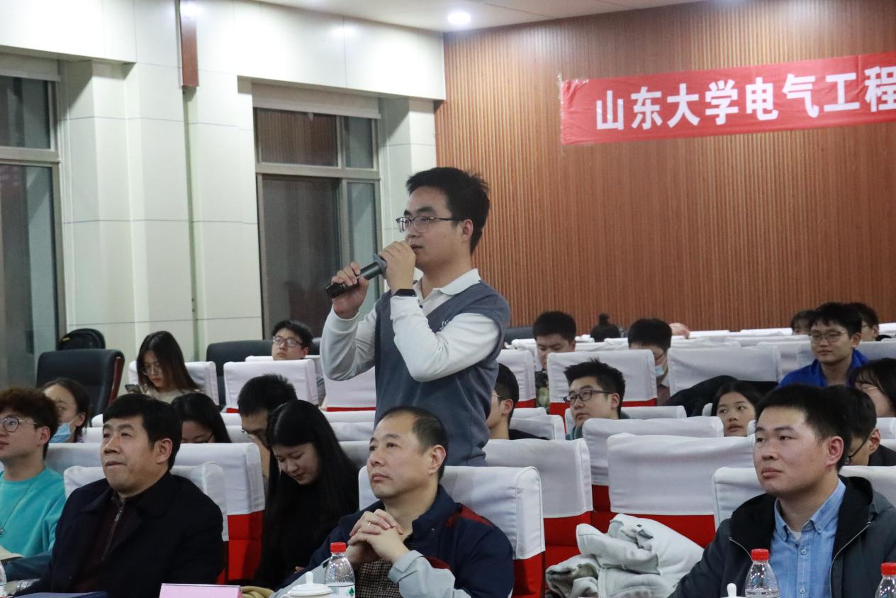 讲座的后半部分,已经毕业的优秀师兄师姐向同学们分享了自己的工作经验,并针对同学们迷惑较多的问题进行解答。分别在积成电子股份有限公司、国网济南供电公司、国网技术学院以及国网山东超高压公司变电检修中心就职的彭正良、朱希松、刘晓艺、李先海四位师兄师姐向同学们介绍了他们的主要工作内容以及工作压力等。在谈到处于学校读研与工作之后的变化问题时,师兄师姐们鼓励同学们在以后的工作生活中多多向他人请教,摒弃“唯学历”论的想法,并希望同学们珍惜学生时代 的学习时间与学习机会。在提问环节里,师兄师姐们又针对性格对于择业的影响这个问题展开了讨论,性格对择业有一定影响,但不具有决定性的影响。