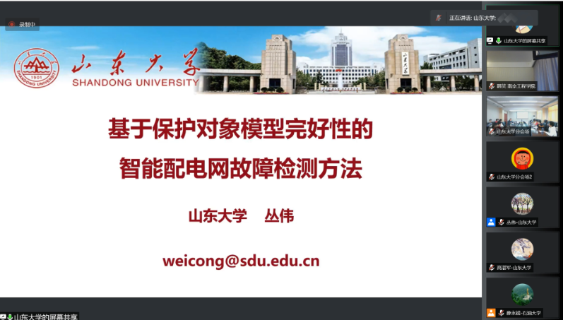 12月16日上午分委会组织了专场技术报告,邀请了南方电网总调保护处副处长余江、中国石油大学教授薛永端、国网山东电科院配网中心主任李立生、ABB中国有限公司电气事业部系统产品市场战略经理曹捷、长沙理工大学教授李泽文、南方电网科学研究院配电技术研究所白浩、国网湖南电科院继电保护中心龙雪梅、山东大学副教授丛伟8位专家做了精彩学术报告,围绕配电网保护控制领域的最新技术成果、关键技术问题、未来发展趋势进行了学术交流。本次会议采取线上形式召开,在山东大学设立了分会场,共有130余人参会,我院继电保护研究所的部分老师和研究生在分会场集中参会,会议取得了热烈的反响。